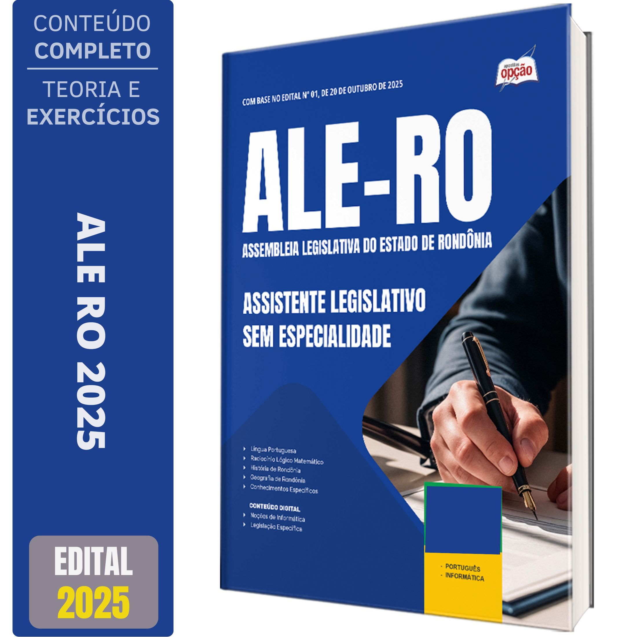 A Apostila Concurso ALE-RO 2025 - Assistente Legislativo - Sem especialidade contempla as seguintes matérias:
