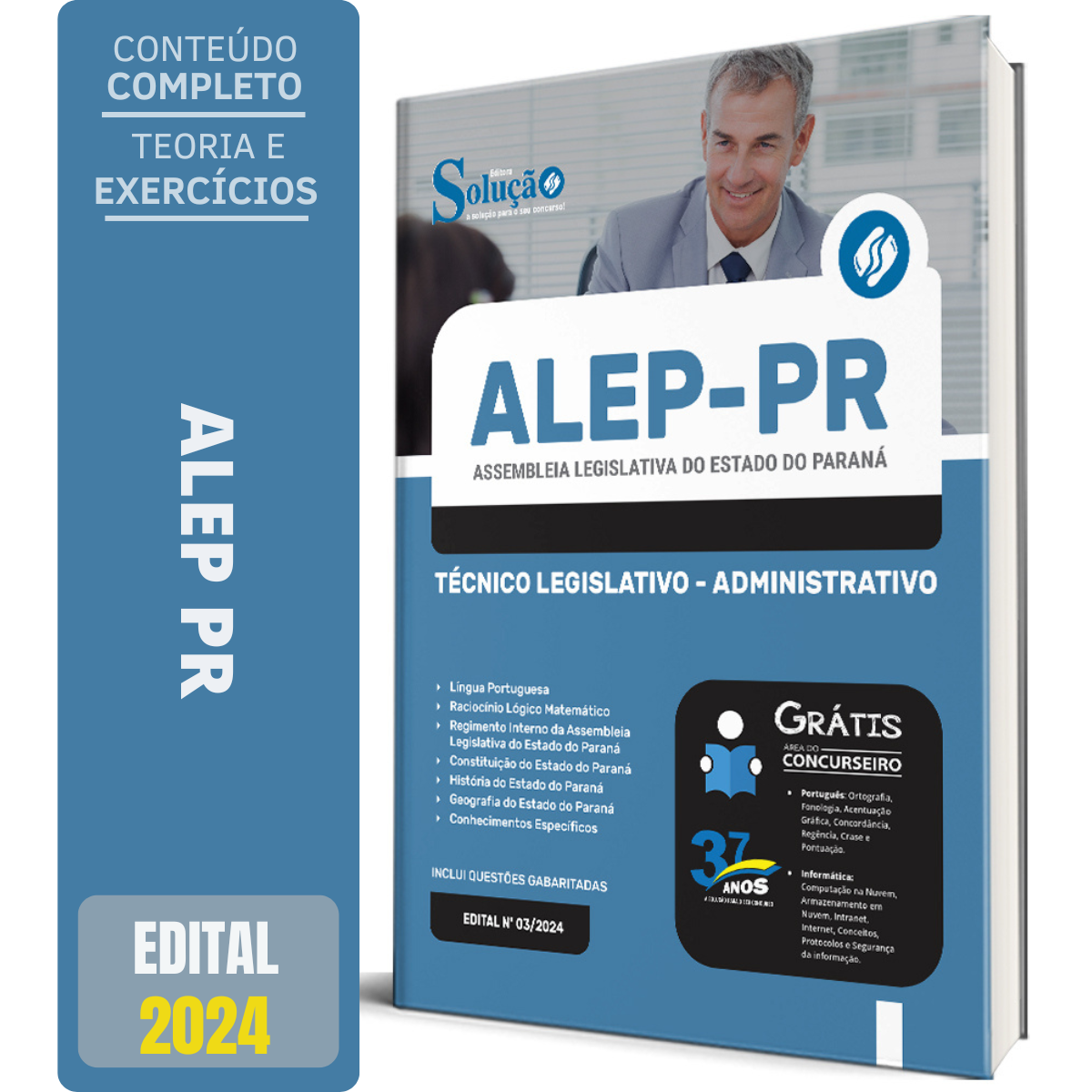 A Apostila Concurso ALEP 2024 - Técnico Legislativo - Administrativo contempla as seguintes matérias: