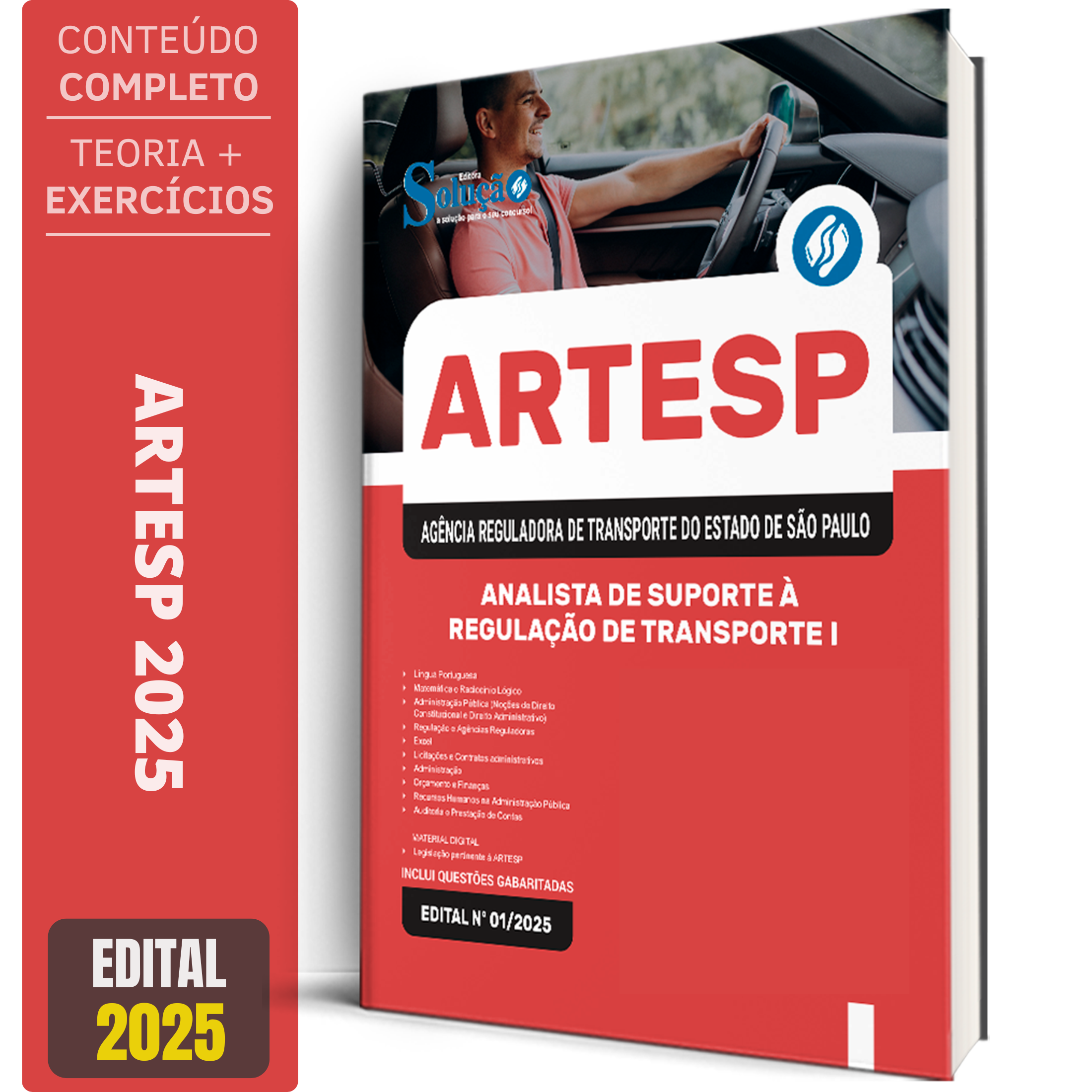 Apostila para ARTESP 2025 para o cargo de Analista de Suporte à Regulação de Transporte I