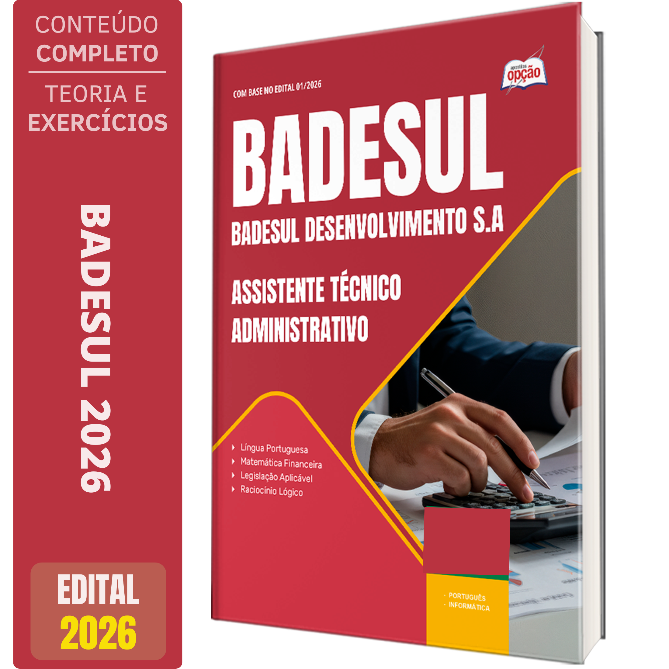 A Apostila Concurso BADESUL 2026 - Assistente Técnico Administrativo contempla as seguintes matérias:
