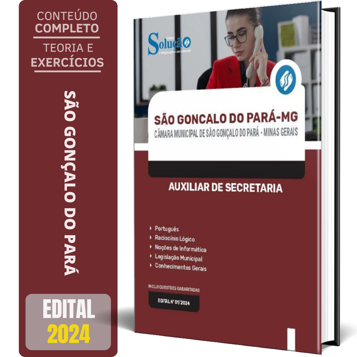 Apostila para Câmara de São Gonçalo do Pará - MG 2024 para o cargo de Auxiliar de Secretaria