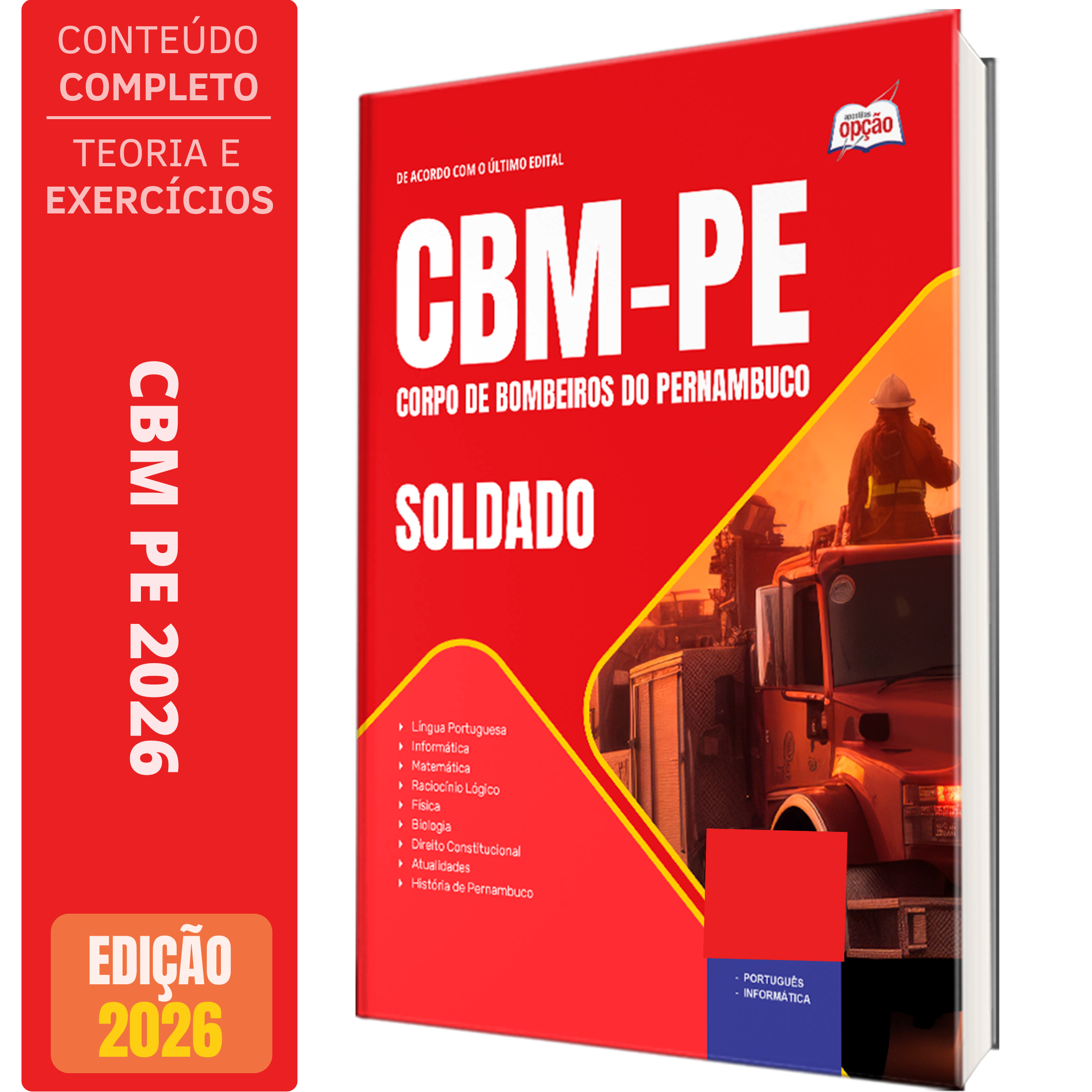 Apostila Corpo de Bombeiros Militar de Pernambuco 2026 - Soldado foi organizada para proporcionar um melhor rendimento na sua preparação, abordando cada conteúdo de forma objetiva e direcionada. Estude para o Concurso da Corpo de Bombeiros Militar de Pernambuco 2026 com um material de acordo com o último Edital oficial para o cargo de Soldado.
