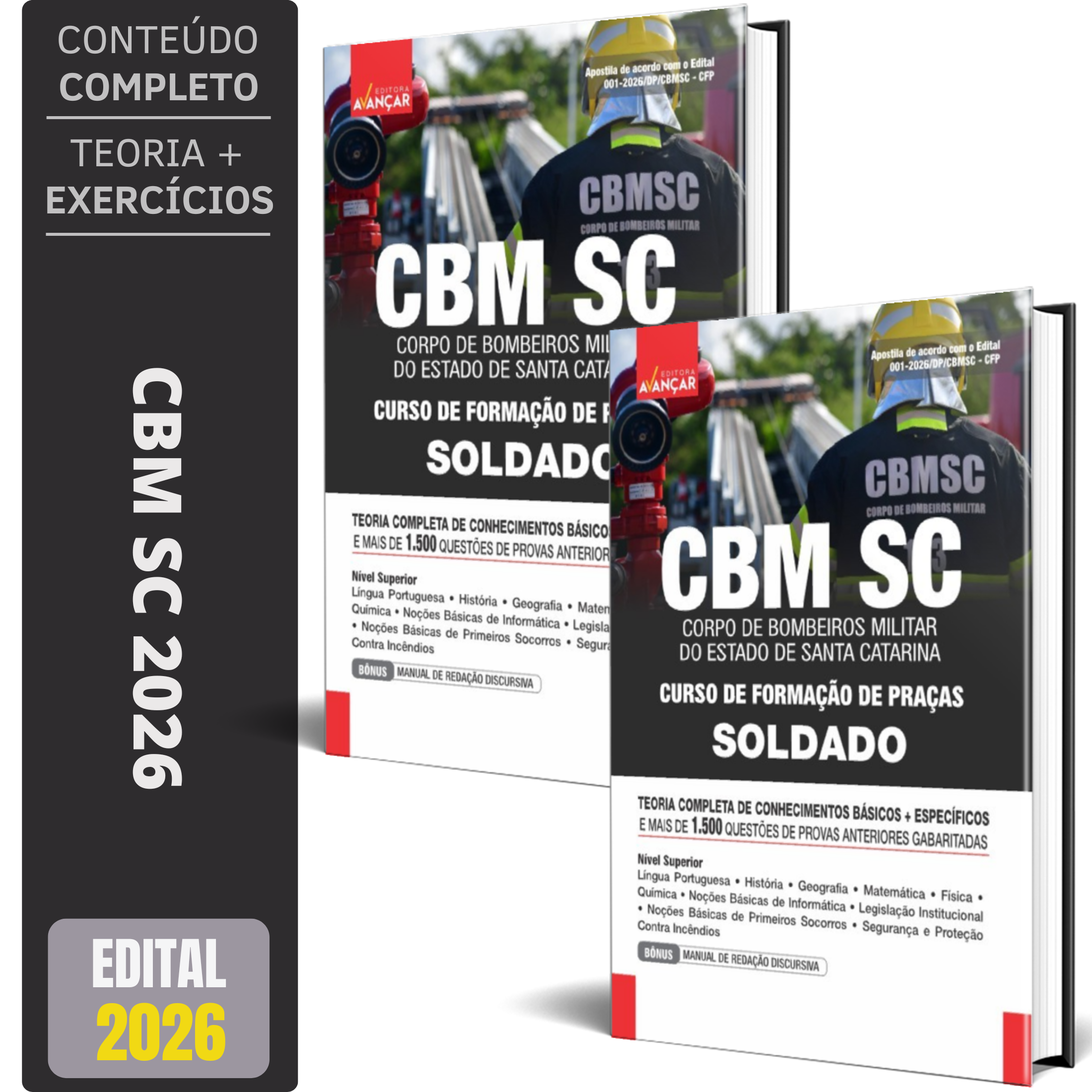 Apostila para CBM SC - CORPO DE BOMBEIROS MILITAR DO ESTADO DE SANTA CATARINA 2026 para o cargo de CURSO DE FORMAÇÃO DE PRAÇAS - SOLDADO