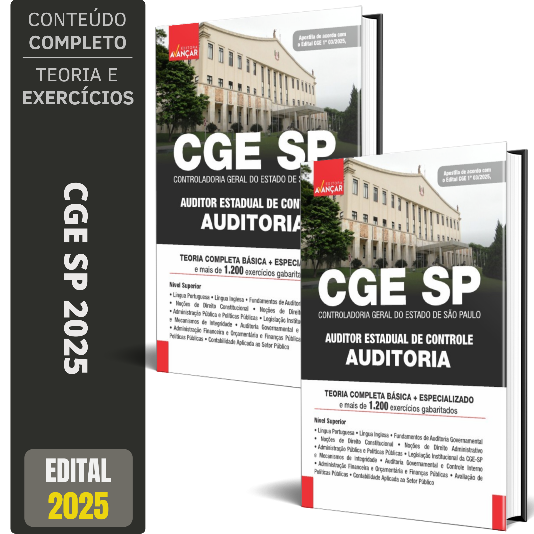 A Apostila Concurso CGE SP - CONTROLADORIA GERAL DO ESTADO DE SÃO PAULO 2025 - AUDITORIA contempla as seguintes matérias: