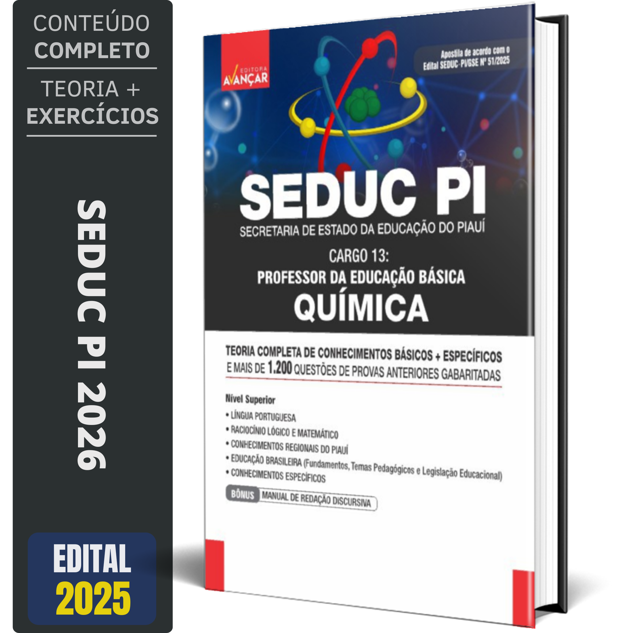 Apostila para SEDUC PI - SECRETARIA DE ESTADO DA EDUCAÇÃO DO PIAUÍ 2026 para o cargo de PROFESSOR DE EDUCAÇÃO BÁSICA - QUÍMICA