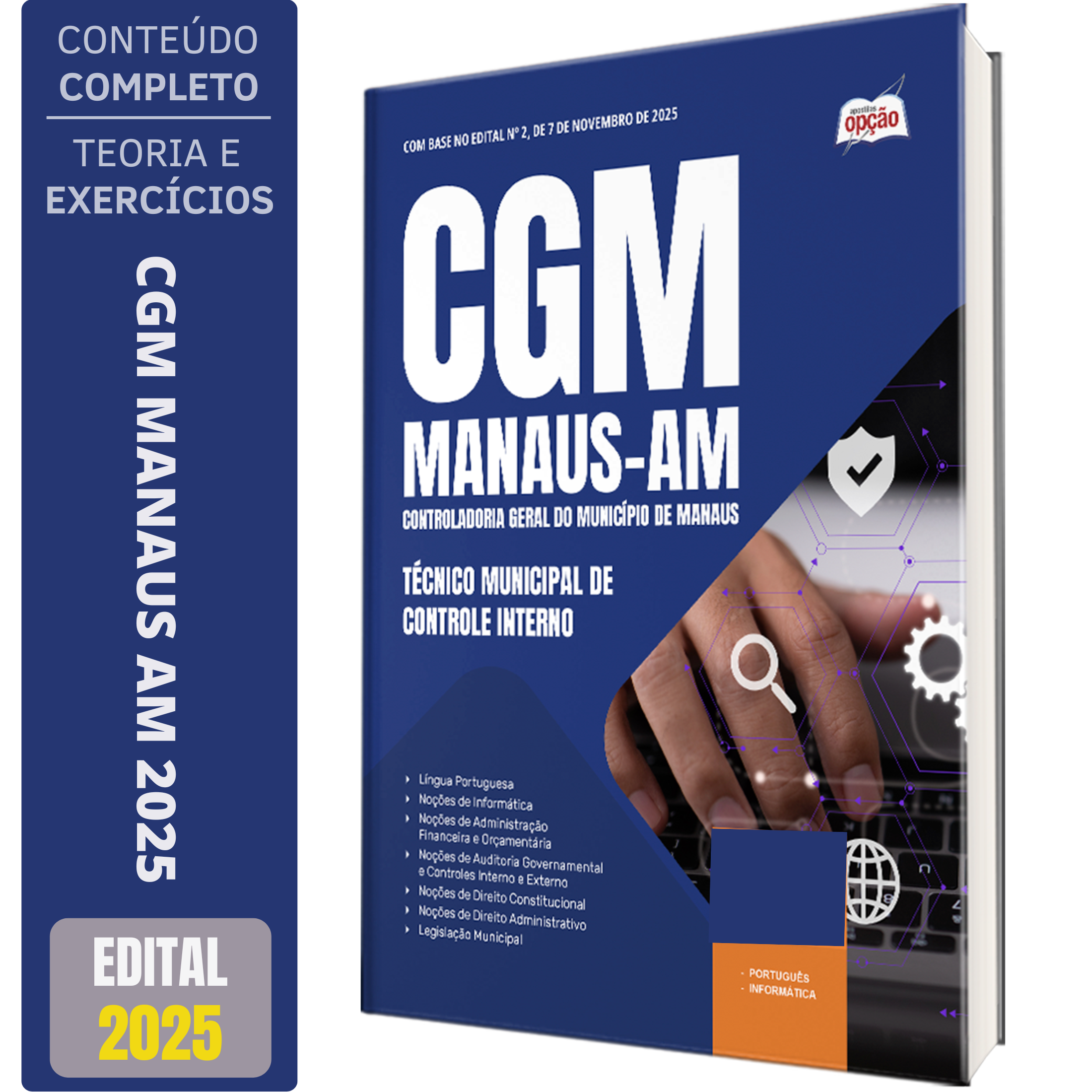 A Apostila Concurso CGM Manaus-AM 2025 - Técnico Municipal de Controle Interno contempla as seguintes matérias: