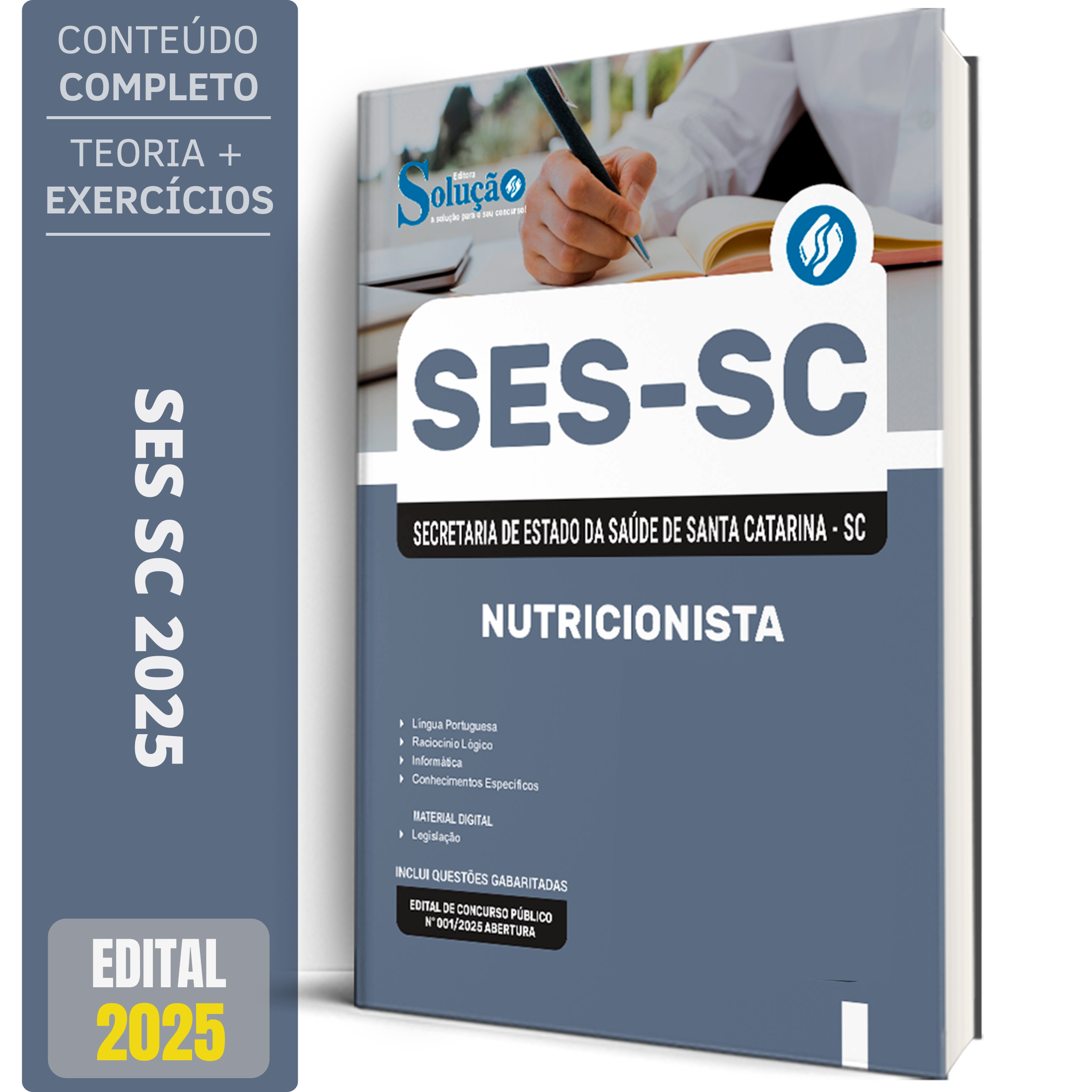 A Apostila Concurso SES-SC 2025 - Nutricionista contempla as seguintes matérias: