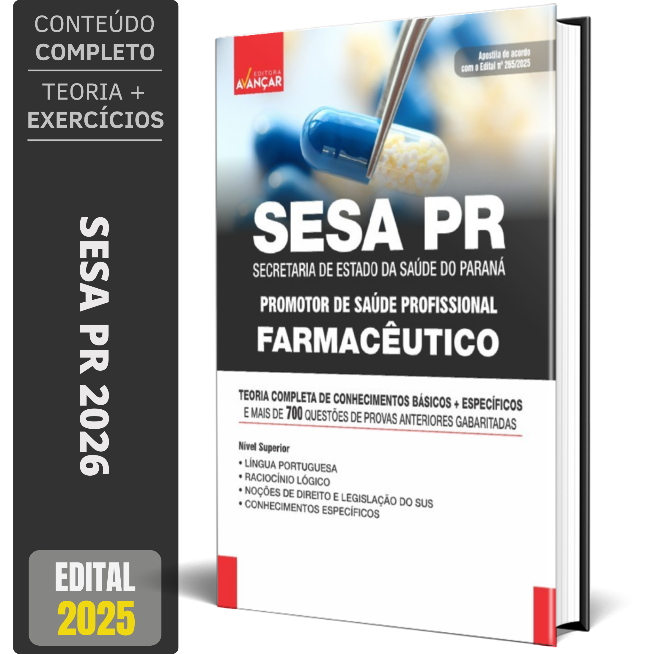 Apostila para SESA PR - SECRETARIA DO ESTADO DA SAÚDE DO PARANÁ 2026 para o cargo de FARMACÊUTICO
