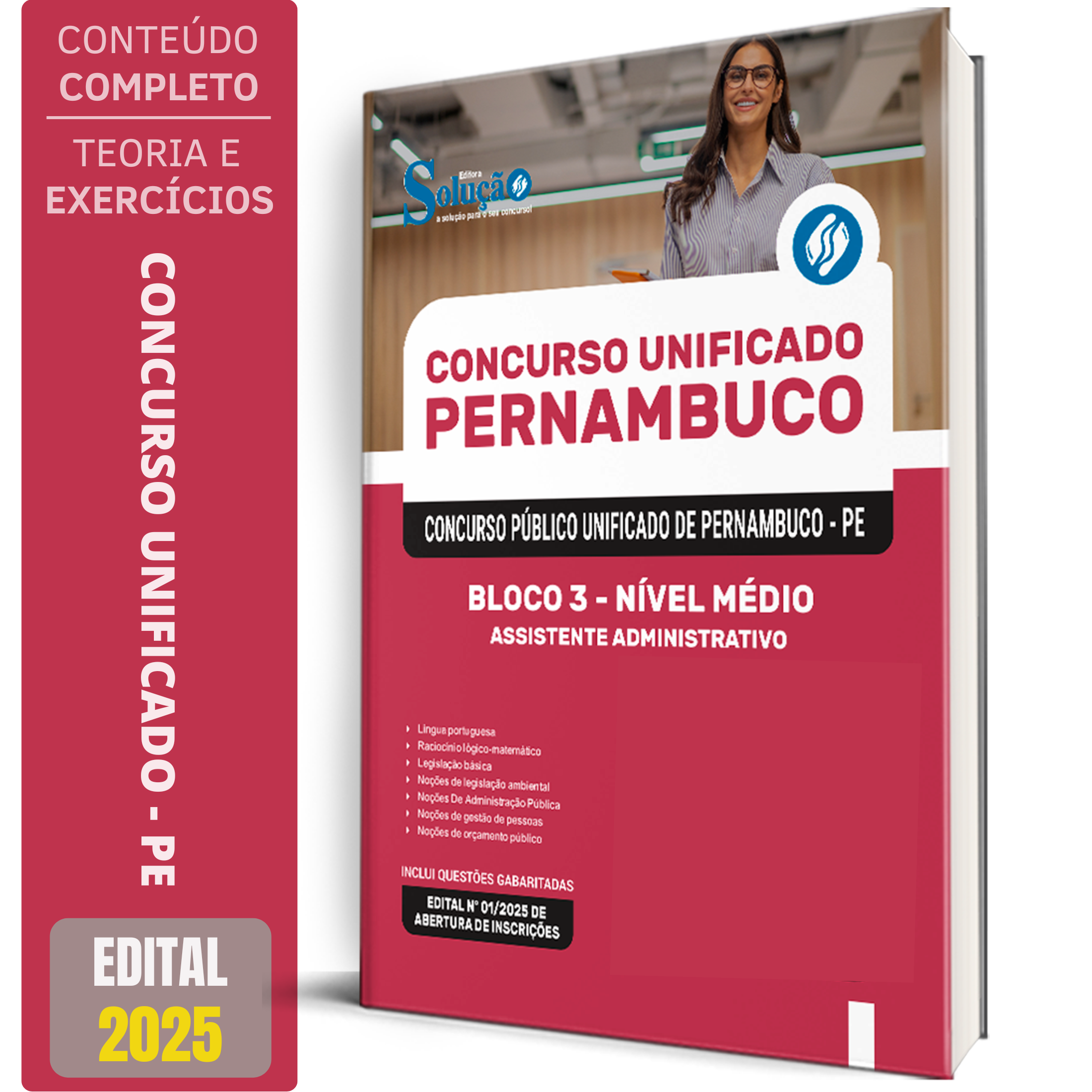 Apostila para Concurso Unificado Pernambuco 2025 para o cargo de Bloco 3 - Nível Médio - Agente Administrativo