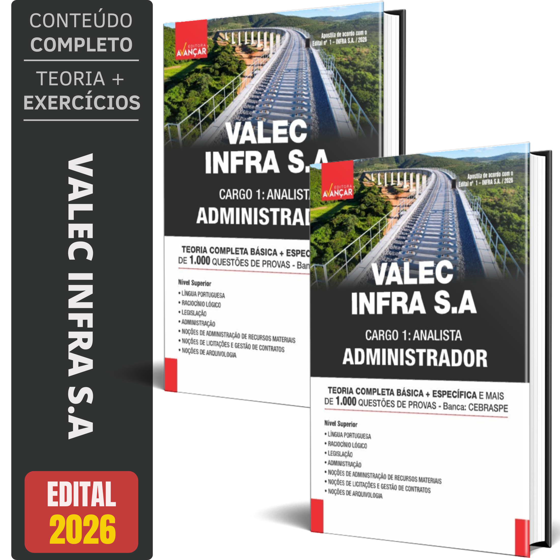 A Apostila Concurso VALEC - INFRA S.A 2026 - ADMINISTRADOR contempla as seguintes matérias: