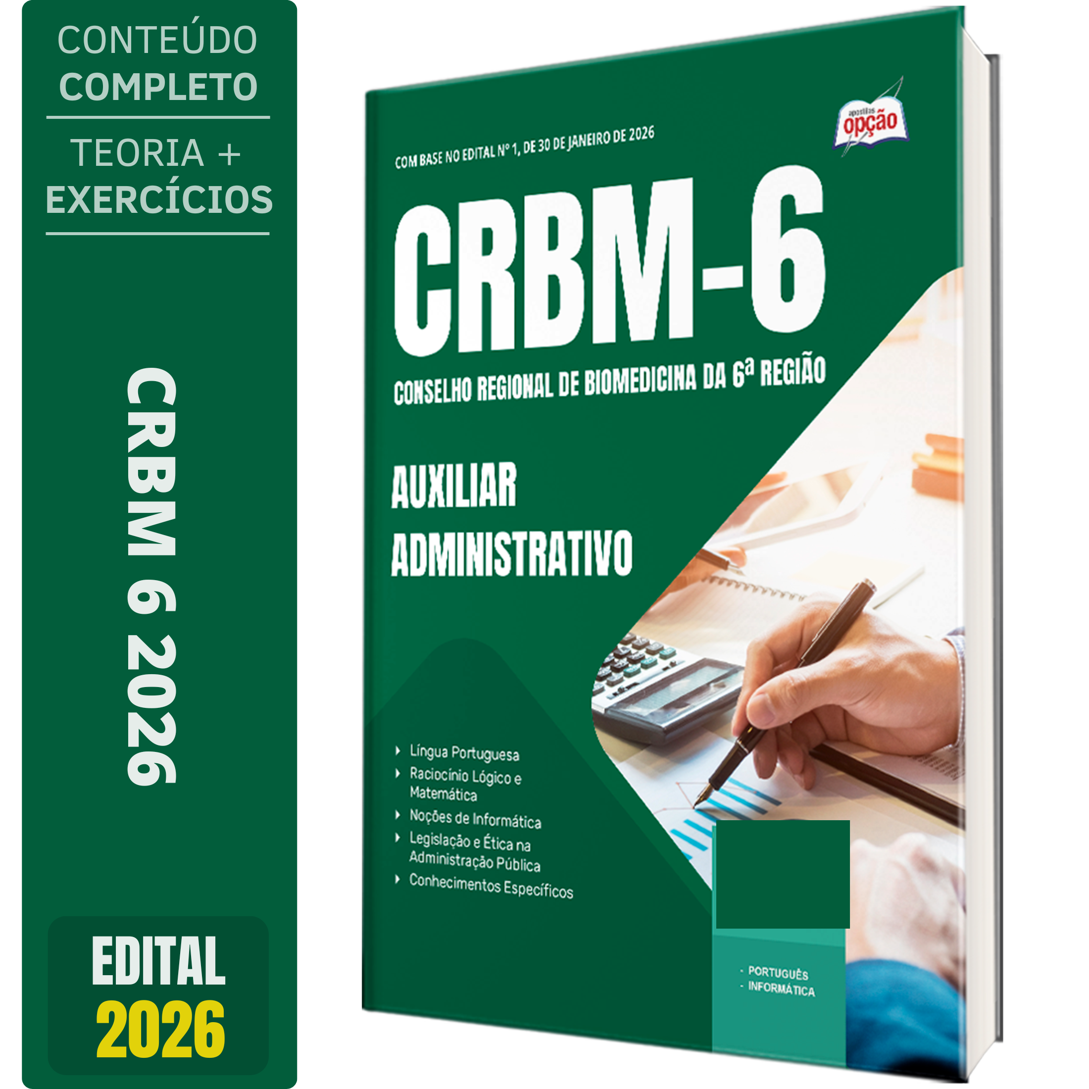 A Apostila Concurso CRBM-6 2026 - Auxiliar Administrativo contempla as seguintes matérias: