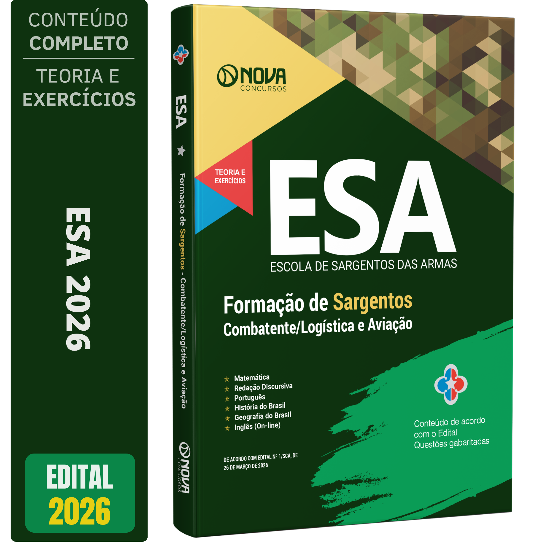 Apostila para Concurso ESA 2026 – Curso de Formação de Sargento - Área: Combatente/Logística e Aviação