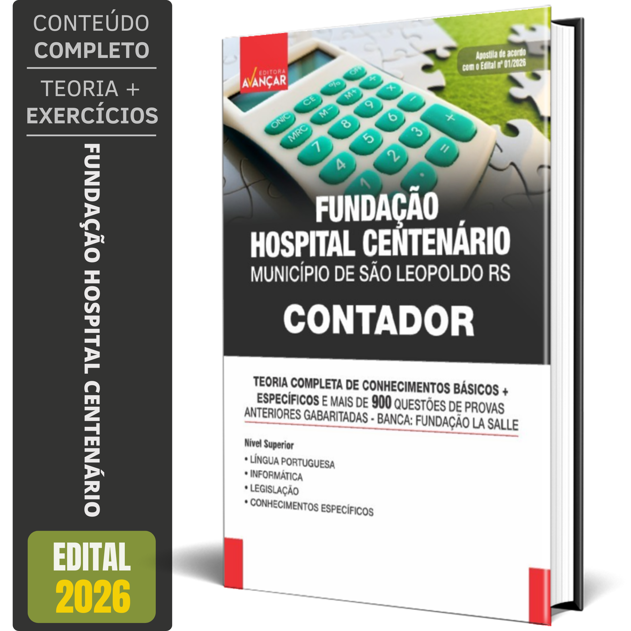 A Apostila Concurso FUNDAÇÃO HOSPITAL CENTENÁRIO 2026 - CONTADOR contempla as seguintes matérias: