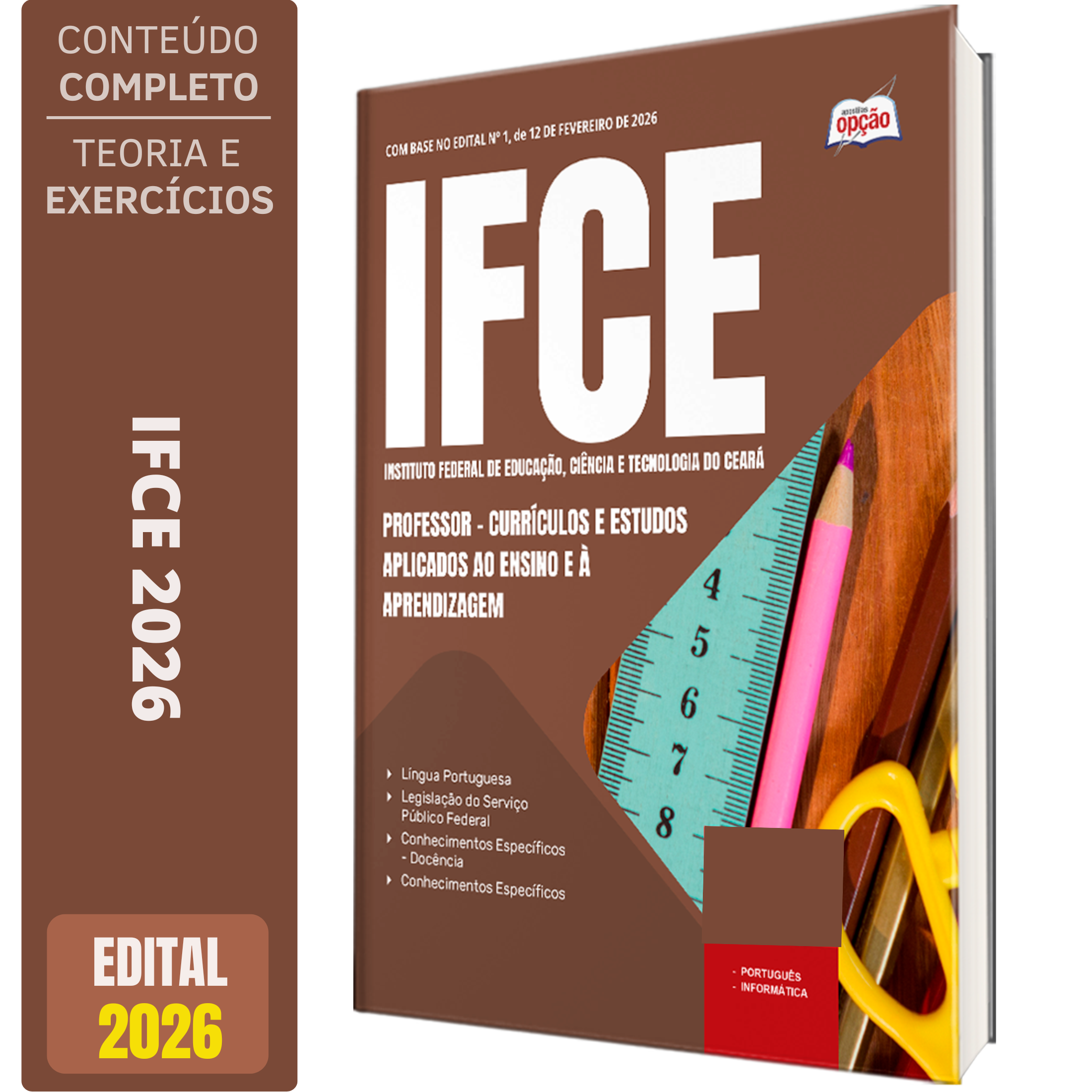 A Apostila Concurso IFCE 2026 - Professor - Currículos e Estudos Aplicados ao Ensino e à Aprendizagem contempla as seguintes matérias: