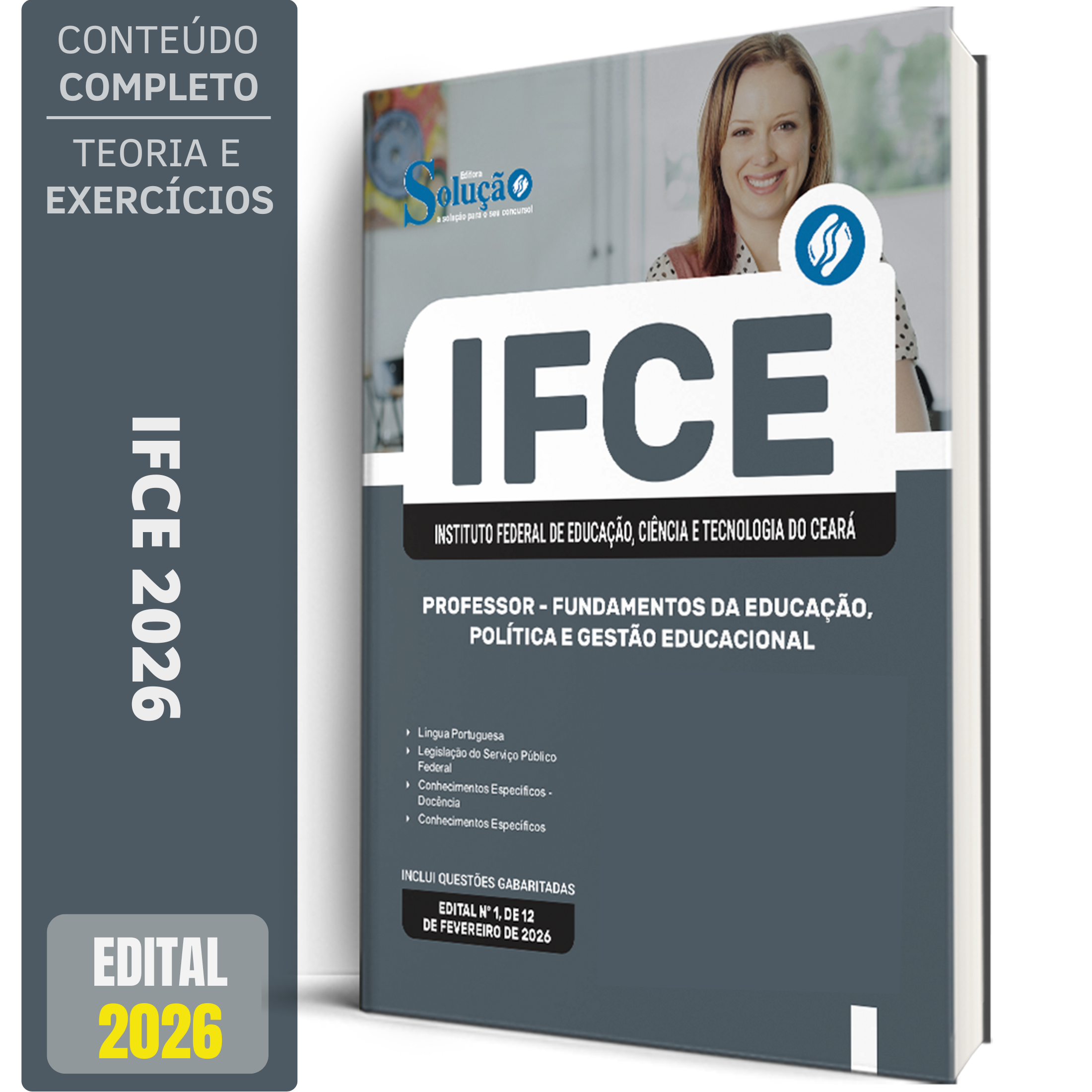 A Apostila Concurso IFCE 2026 - Professor - Fundamentos da Educação, Política e Gestão Educacional contempla as seguintes matérias:
