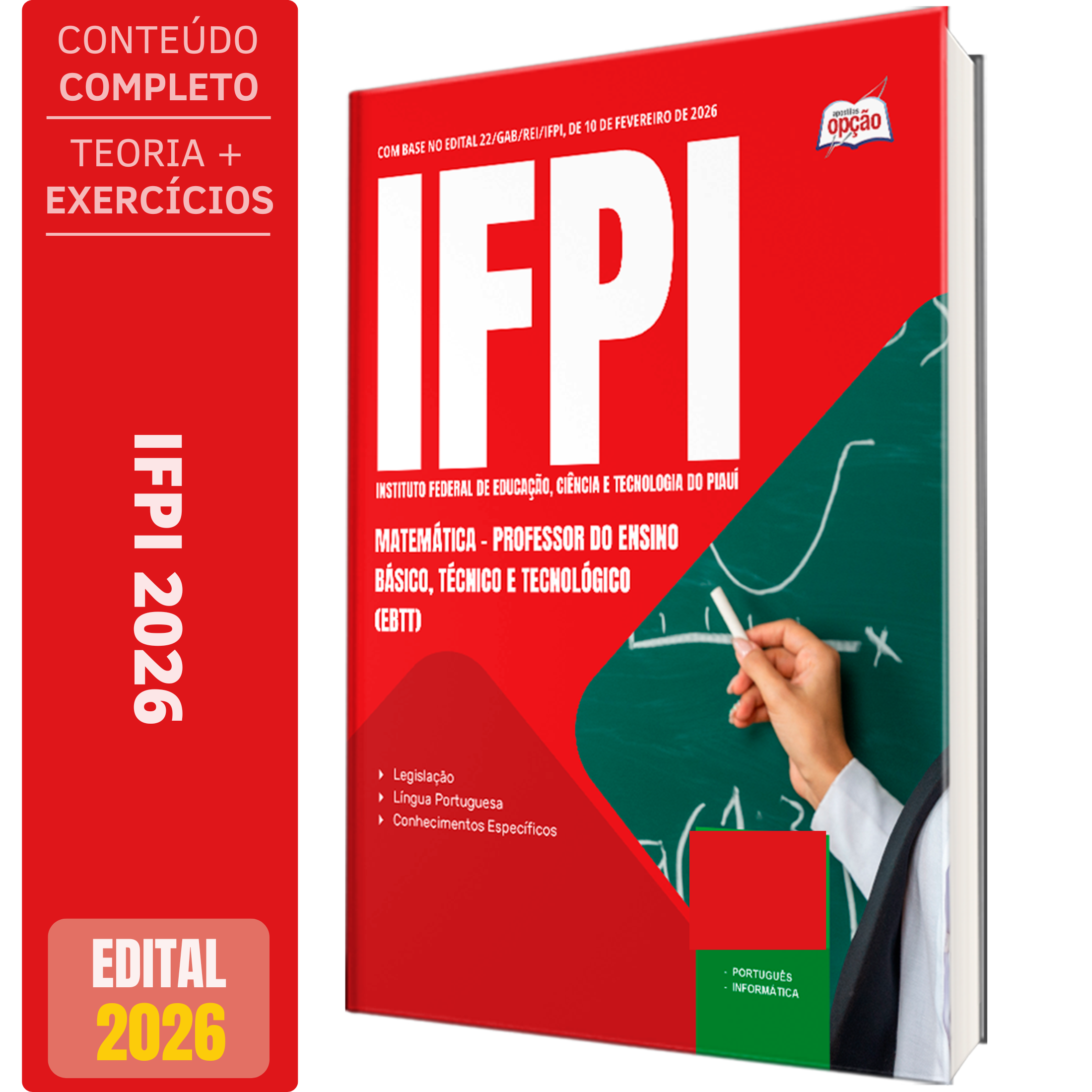 A Apostila Concurso IFPI 2026 - Professor do Ensino Básico, Técnico e Tecnológico (EBTT) - Matemática contempla as seguintes matérias: