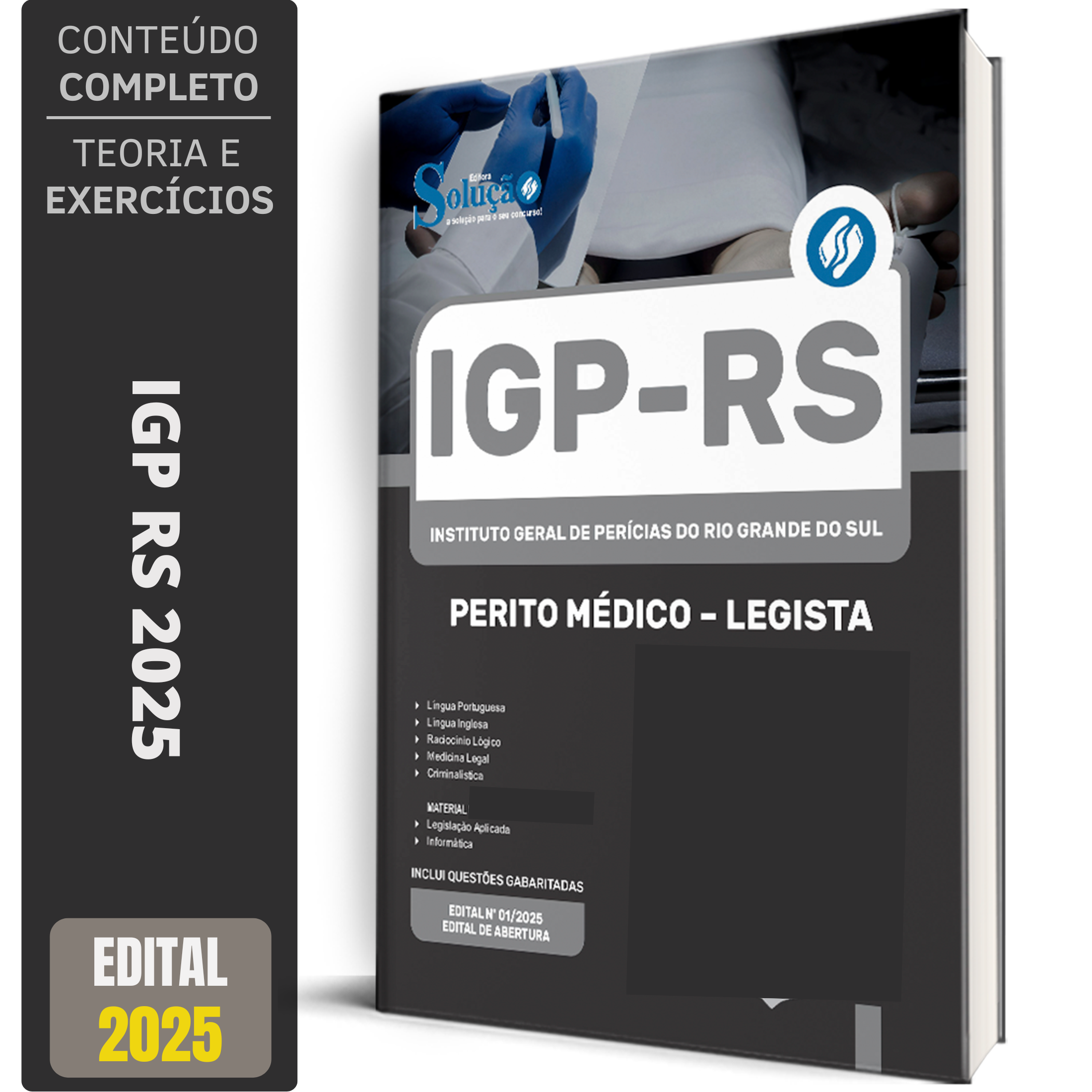 A Apostila Concurso IGP-RS 2025 - Perito Médico - Legista contempla as seguintes matérias: