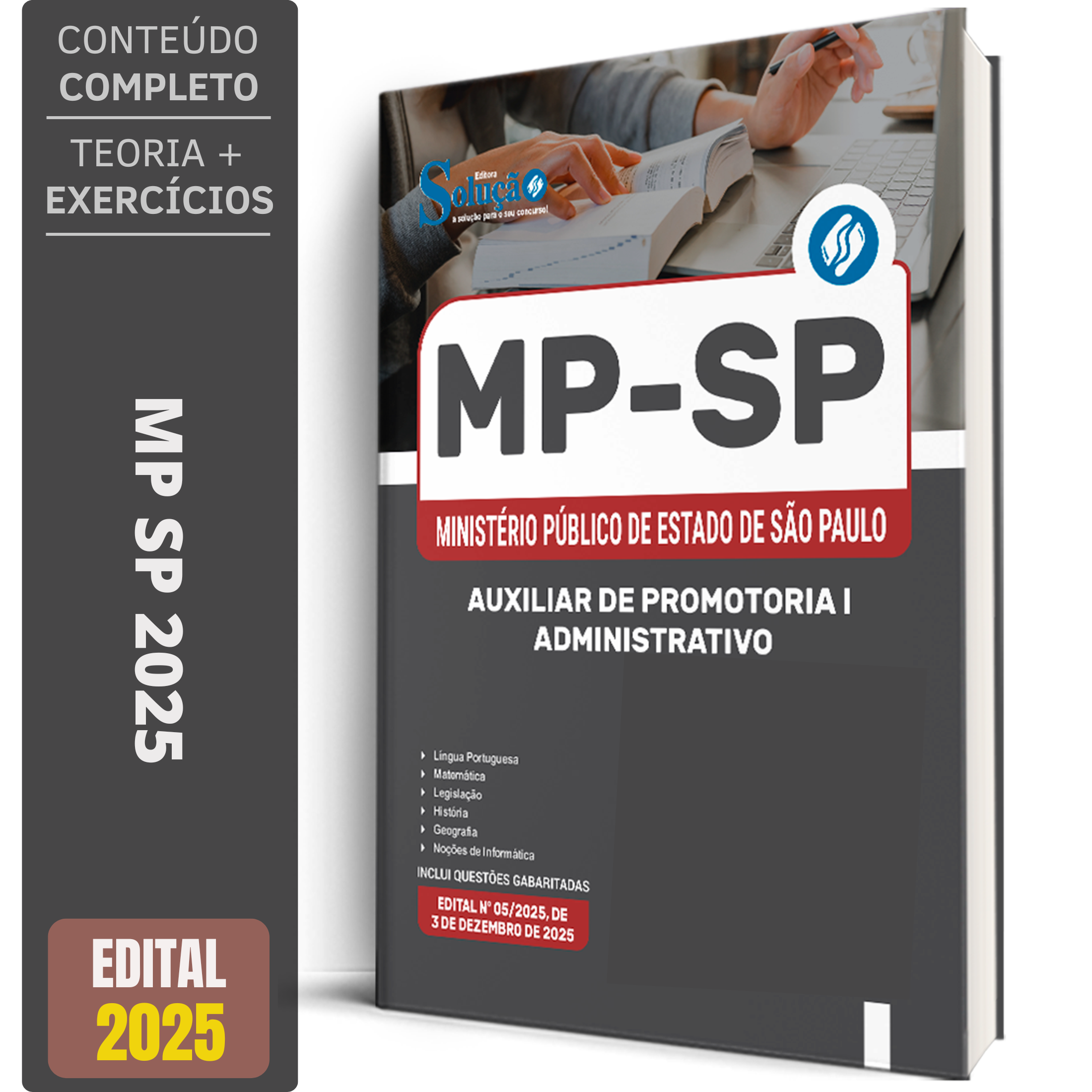 A Apostila Concurso MP-SP 2026 - Auxiliar de Promotoria I - Administração contempla as seguintes matérias: