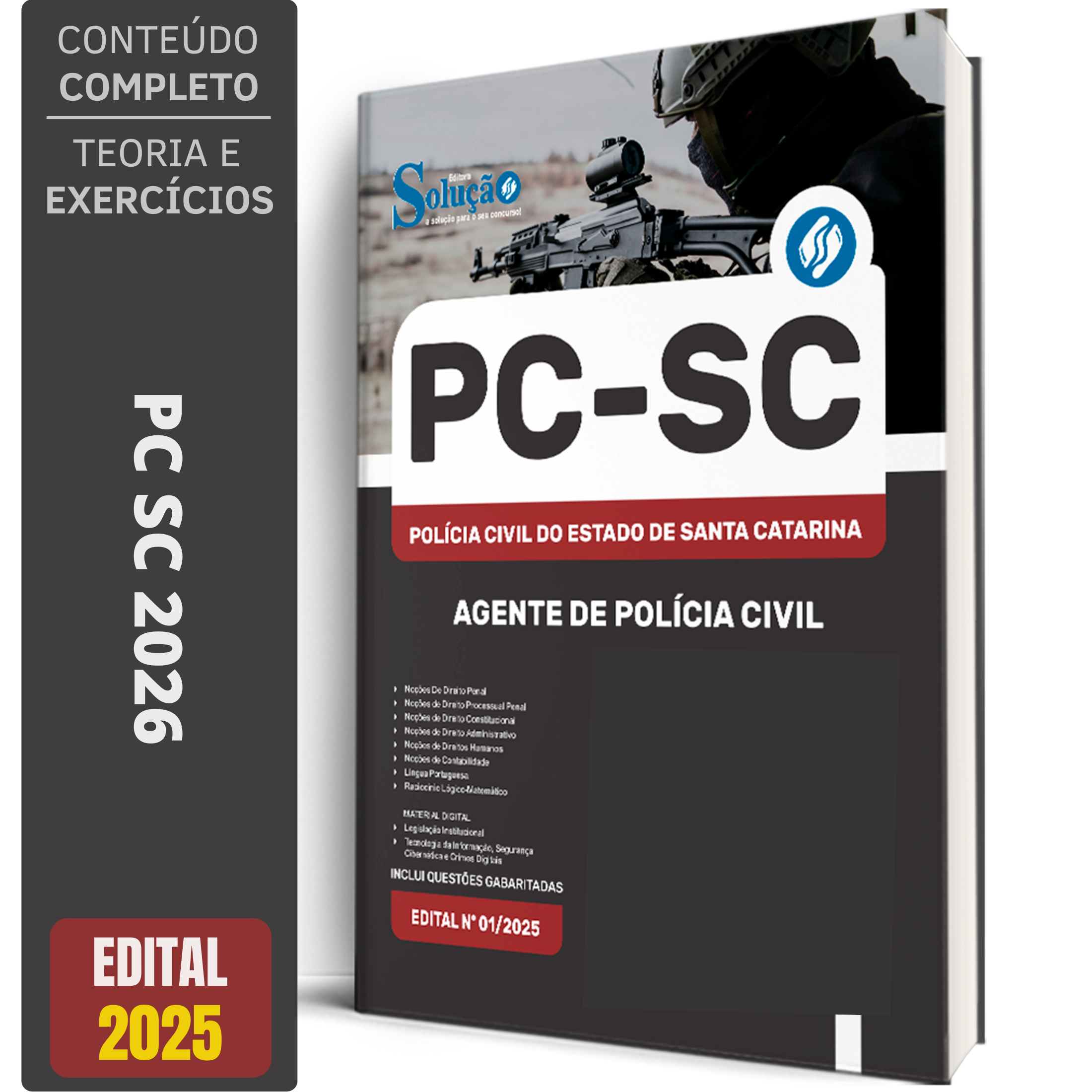 A Apostila Concurso PC-SC 2026 - Agente de Polícia Civil contempla as seguintes matérias: