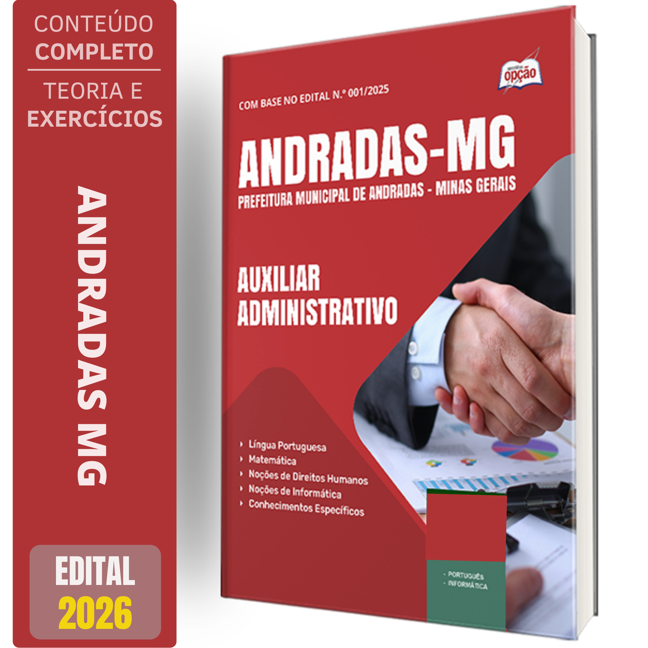Apostila para Prefeitura de Andradas-MG 2026 para o cargo de Auxiliar Administrativo