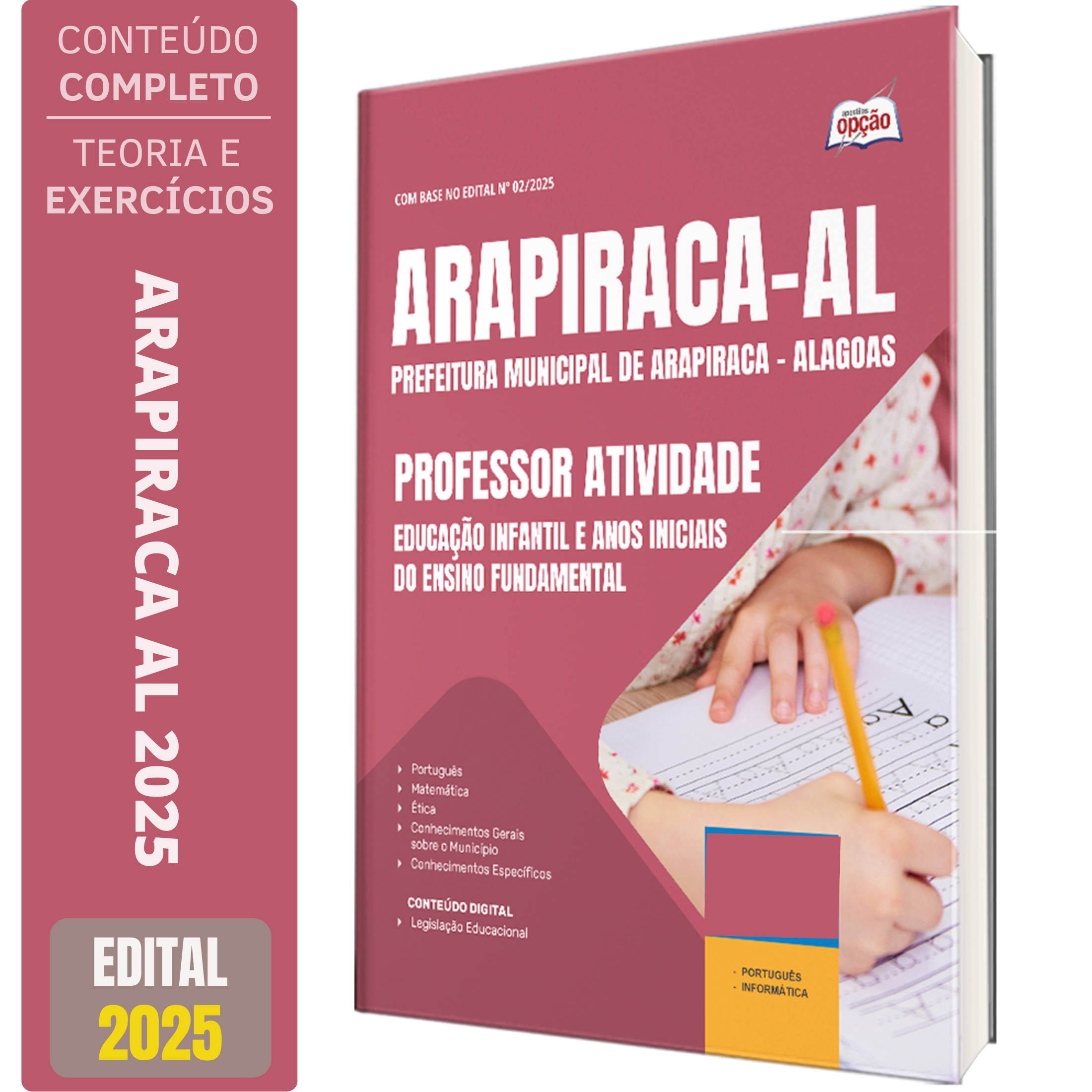 Apostila para Prefeitura de Arapiraca – AL 2025 para o cargo de Professor Atividade (Educação Infantil e Anos Iniciais)