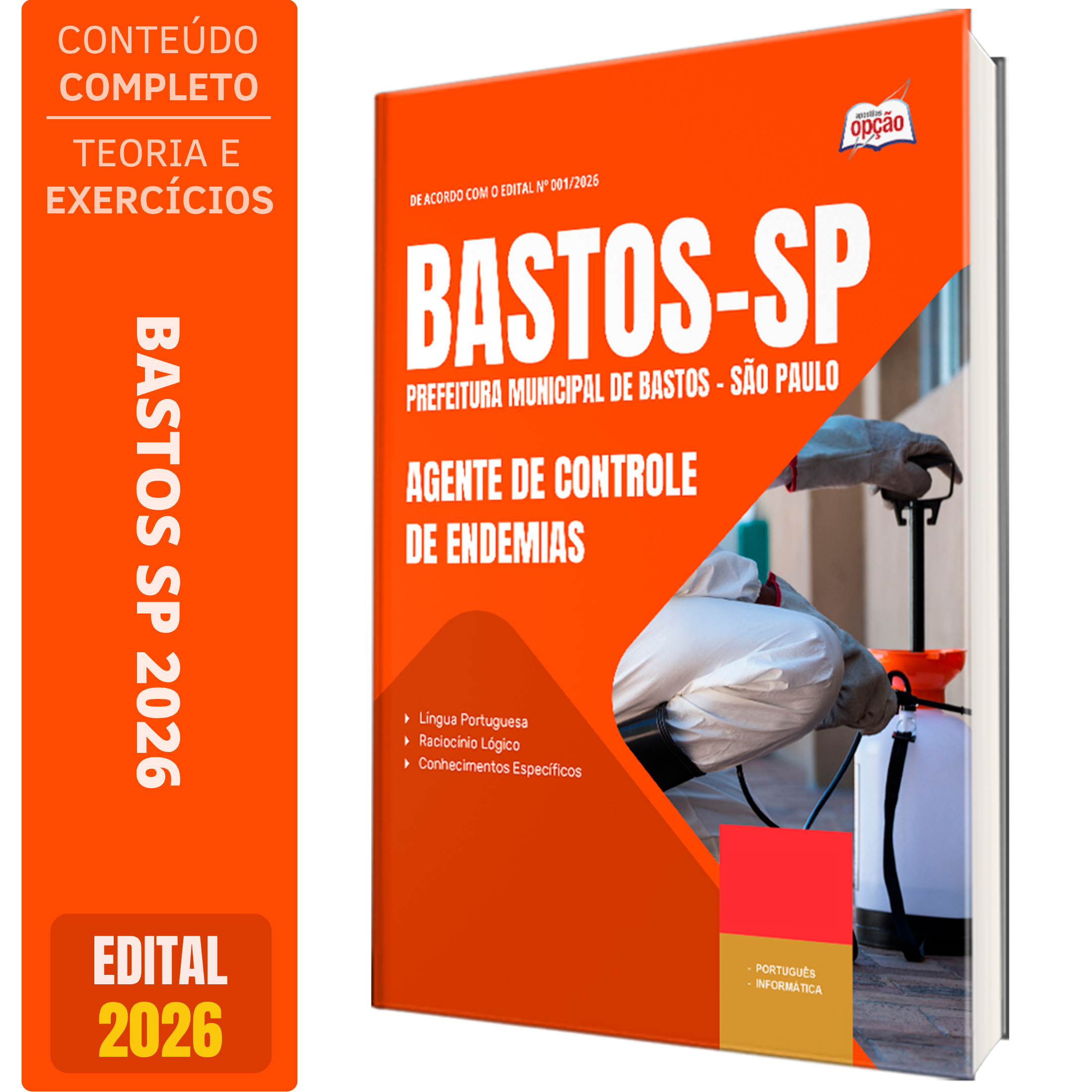 A Apostila para Agente de Controle de Endemias do concurso Prefeitura de Bastos SP 2026 foi rigorosamente elaborada conforme o edital, o que torna o seu conteúdo completo e atualizado.