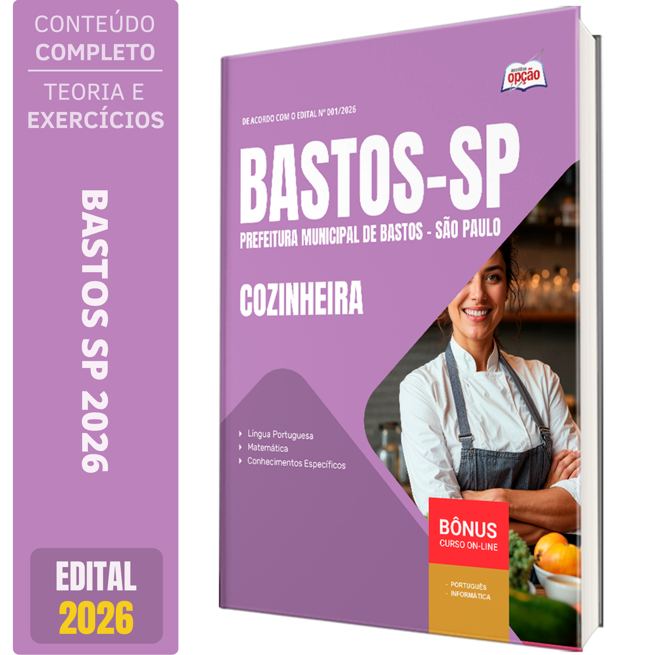 A Apostila para Cozinheira do concurso Prefeitura de Bastos SP 2026 foi rigorosamente elaborada conforme o edital, o que torna o seu conteúdo completo e atualizado.
