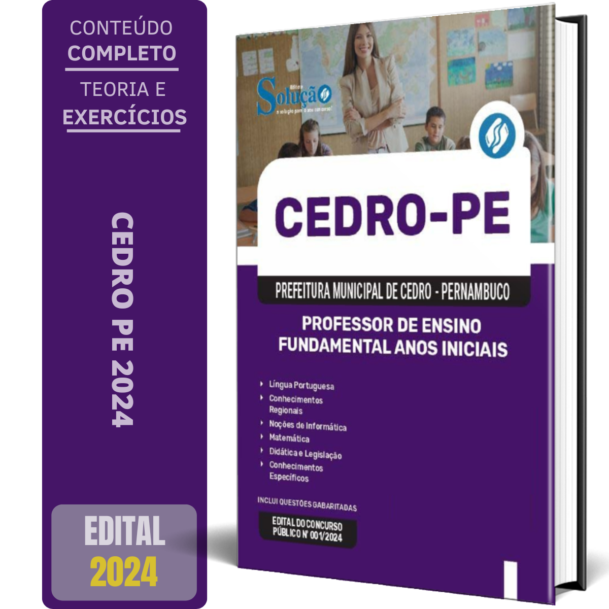 A Apostila Concurso Prefeitura de Cedro – PE 2024 - Professor de Ensino - Fundamental Anos Iniciais contempla as seguintes matérias: