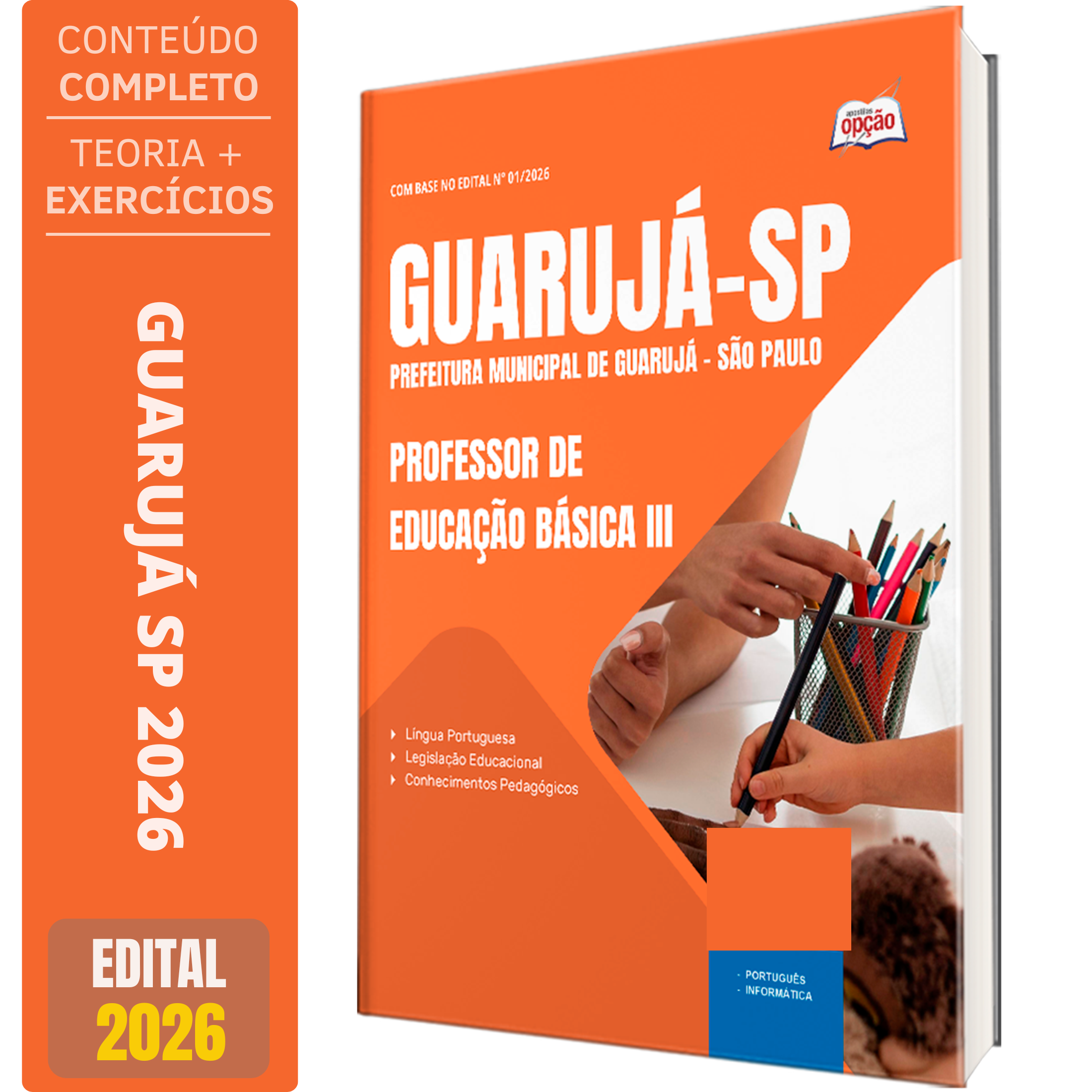 A Apostila Concurso Prefeitura de Guarujá – SP 2026 - Professor de Educação Básica III contempla as seguintes matérias: