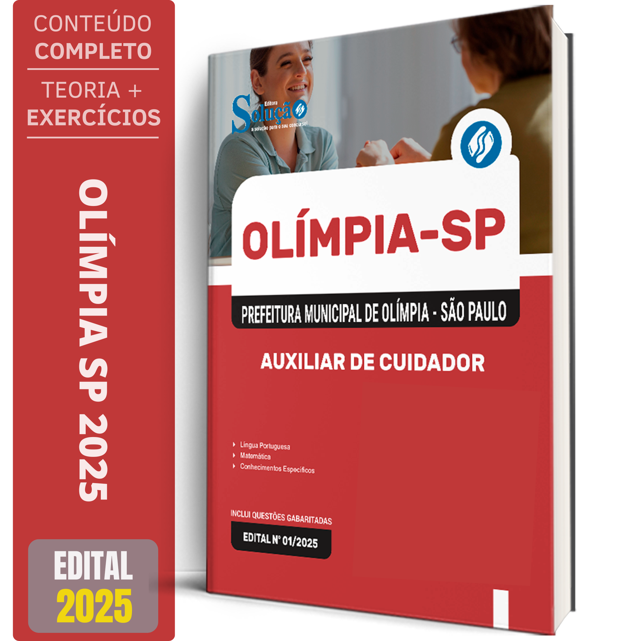 A Apostila Concurso Prefeitura de Olímpia – SP 2026 - Auxiliar de Cuidador contempla as seguintes matérias: