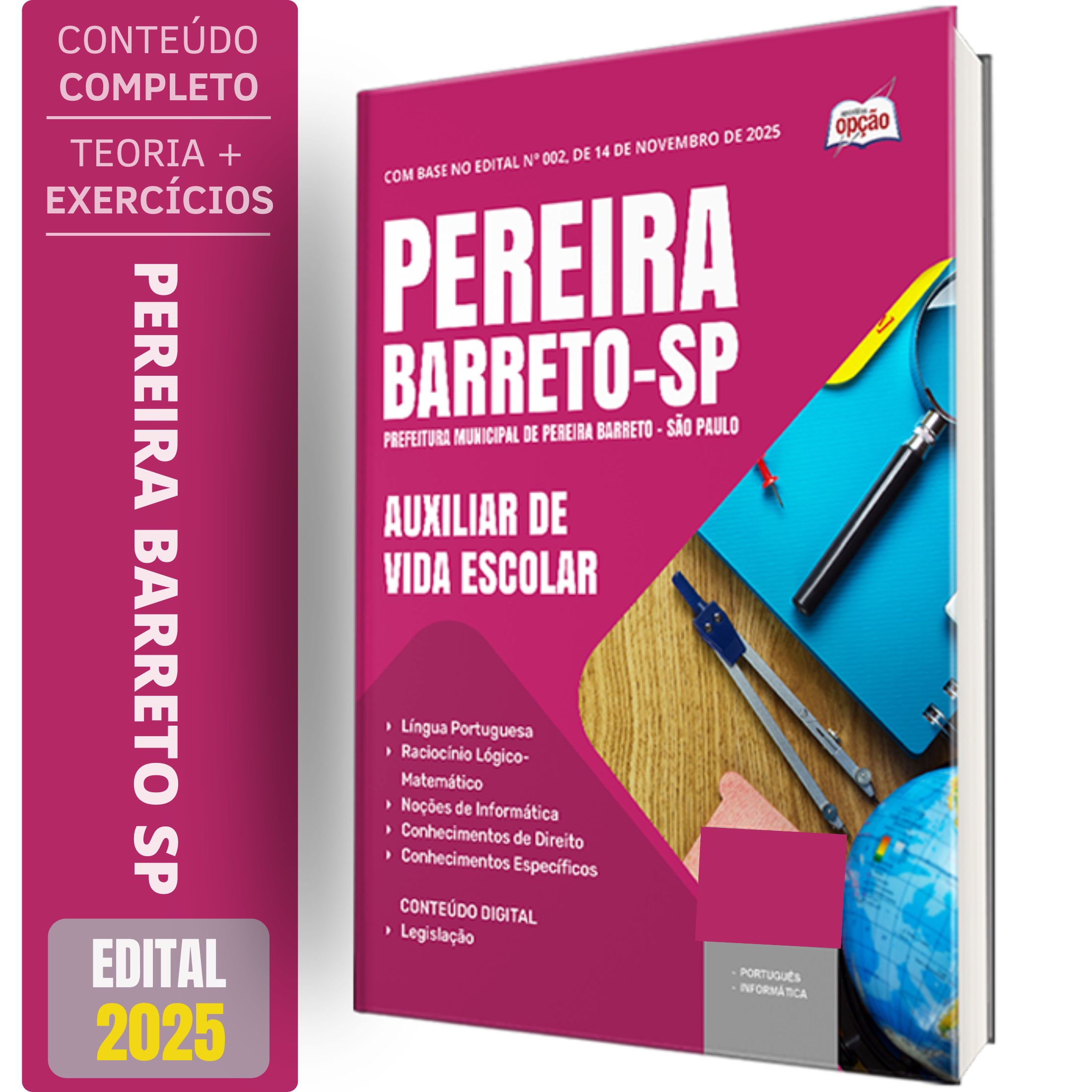 Apostila para Prefeitura de Pereira Barreto – SP 2026 para o cargo de Auxiliar de Vida Escolar