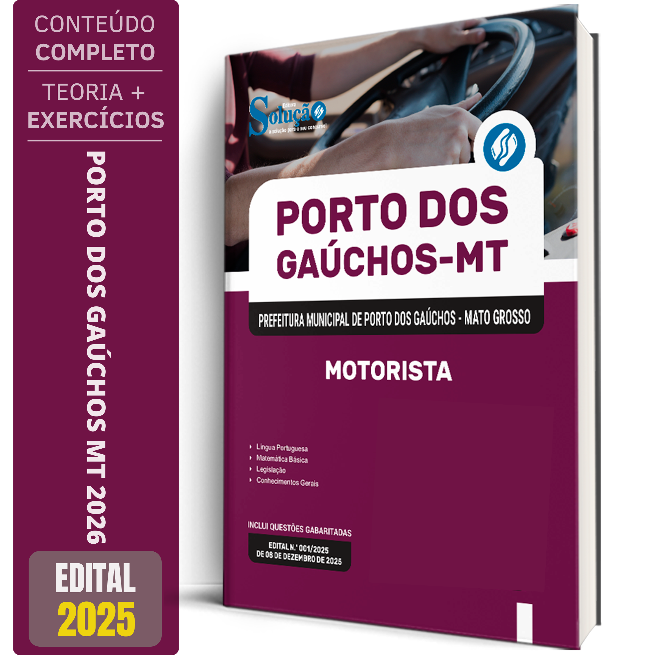A Apostila Concurso Prefeitura de Porto dos Gaúchos-MT 2026 - Motorista contempla as seguintes matérias: