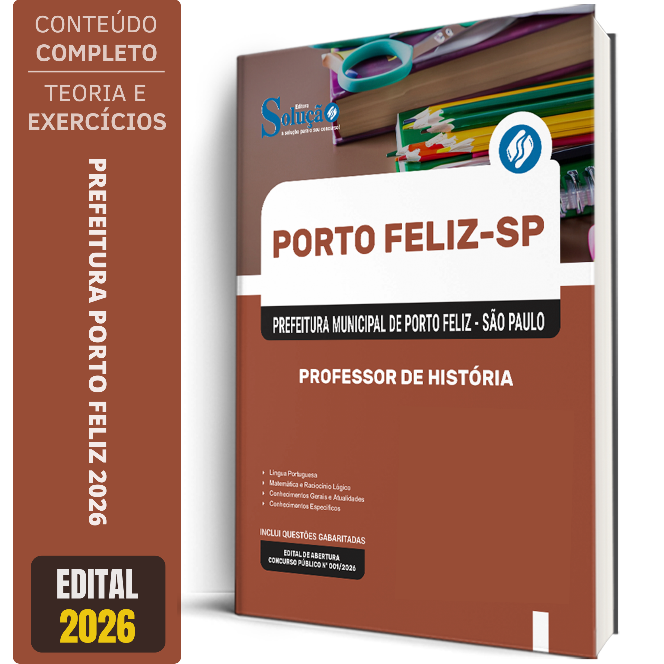 Apostila da Prefeitura Municipal de Porto Feliz SP 2026 para Professor de História