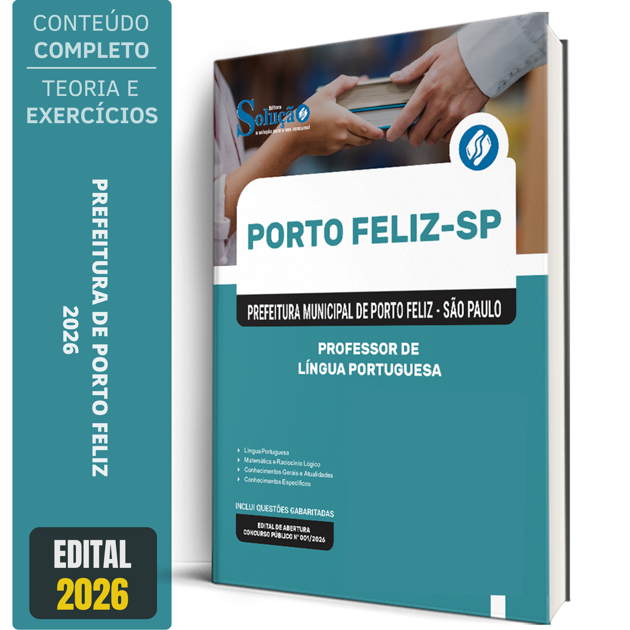 Apostila de Prefeitura de Porto Feliz - SP 2026 para o cargo de Professor de Língua Portuguesa