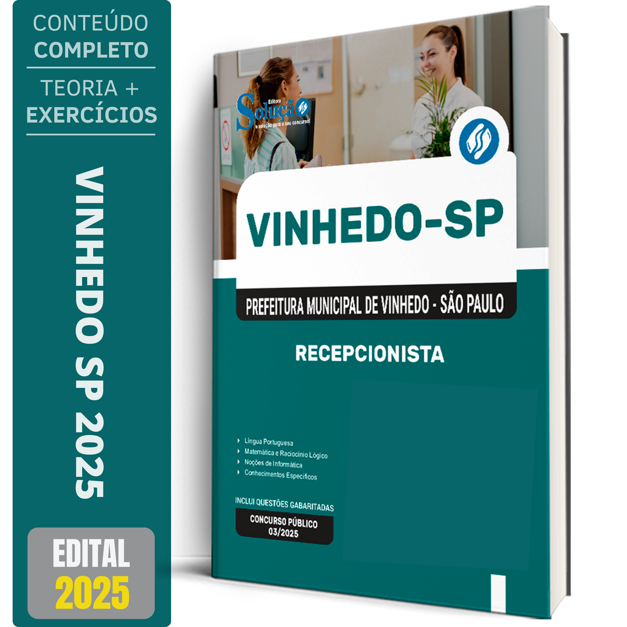 Apostila para Prefeitura de Vinhedo – SP 2025 para o cargo de Recepcionista