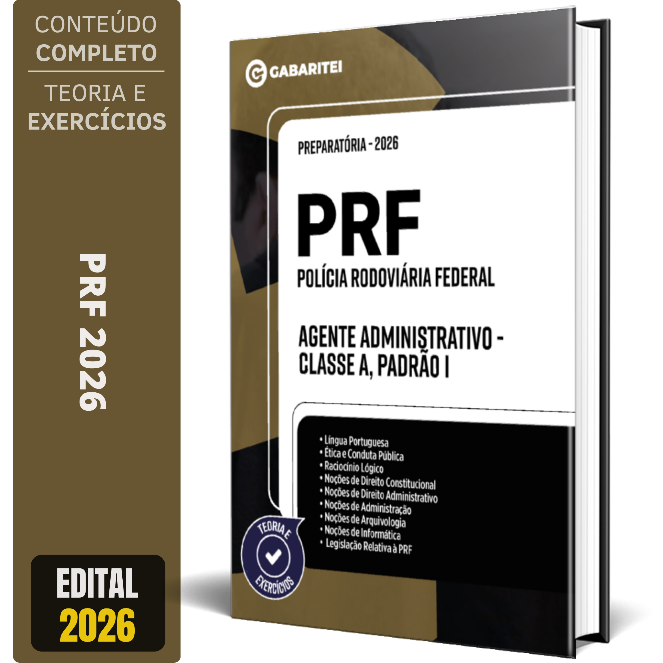 A Apostila Concurso PRF 2026 - Agente Administrativo - Classe A, Padrão 1 contempla as seguintes matérias: