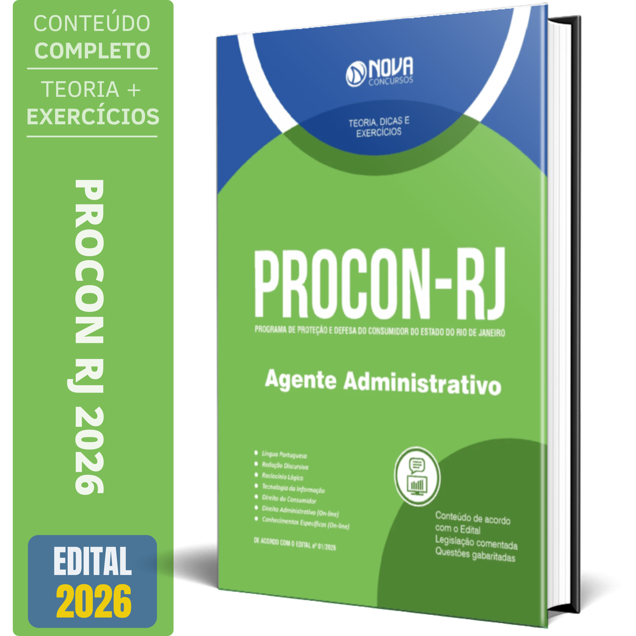 A Apostila Concurso PROCON-RJ 2026 - Agente Administrativo contempla as seguintes matérias: