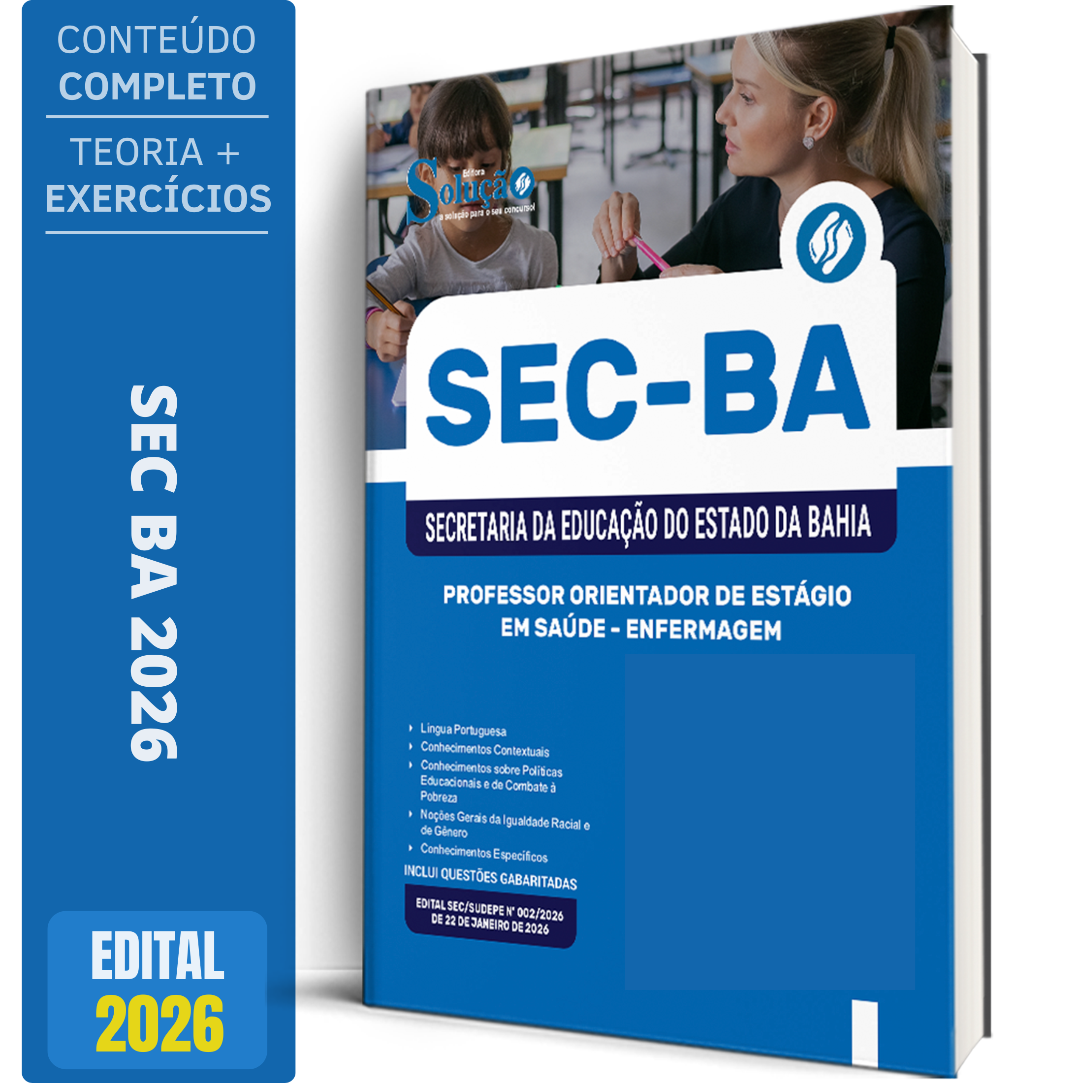 A Apostila Concurso SEC-BA 2026 - Professor Orientador de Estágio em Saúde - Enfermagem contempla as seguintes matérias:
