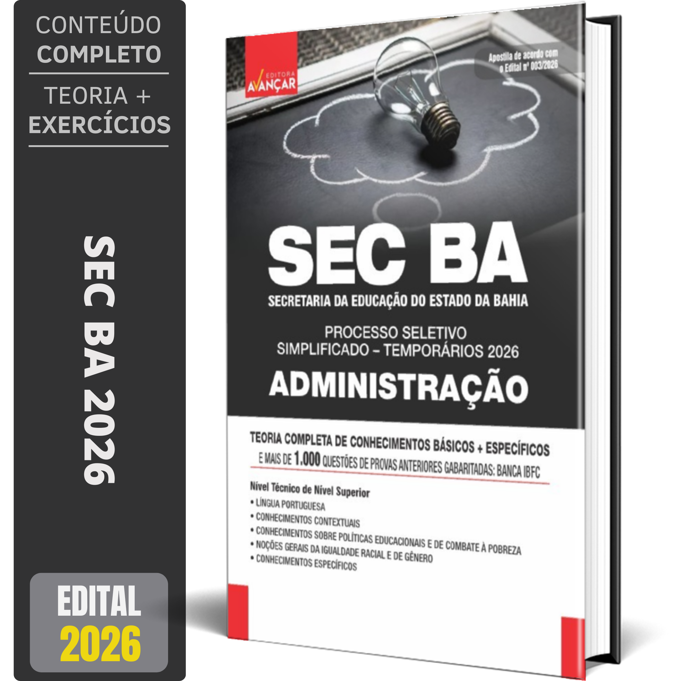 A Apostila Concurso SEC BA - SECRETARIA DA EDUCAÇÃO DO ESTADO DA BAHIA - TEMPORÁRIOS 2026 - ADMINISTRAÇÃO contempla as seguintes matérias: