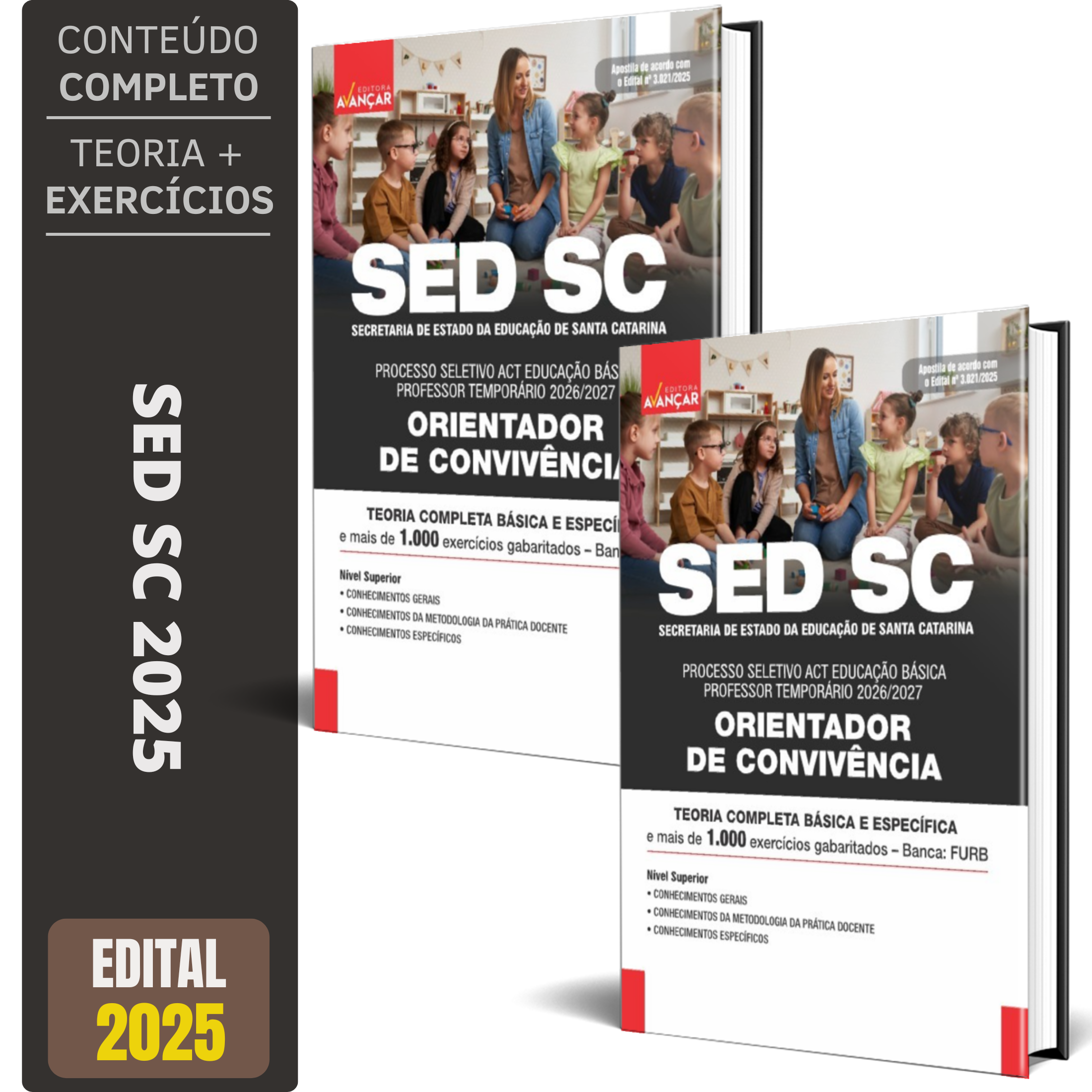 Apostila para SED SC - SECRETARIA DE ESTADO DA EDUCAÇÃO DE SANTA CATARINA 2025 para o cargo de PROFESSOR TEMPORÁRIO 2026/2027 - ORIENTADOR DE CONVIVÊNCIA