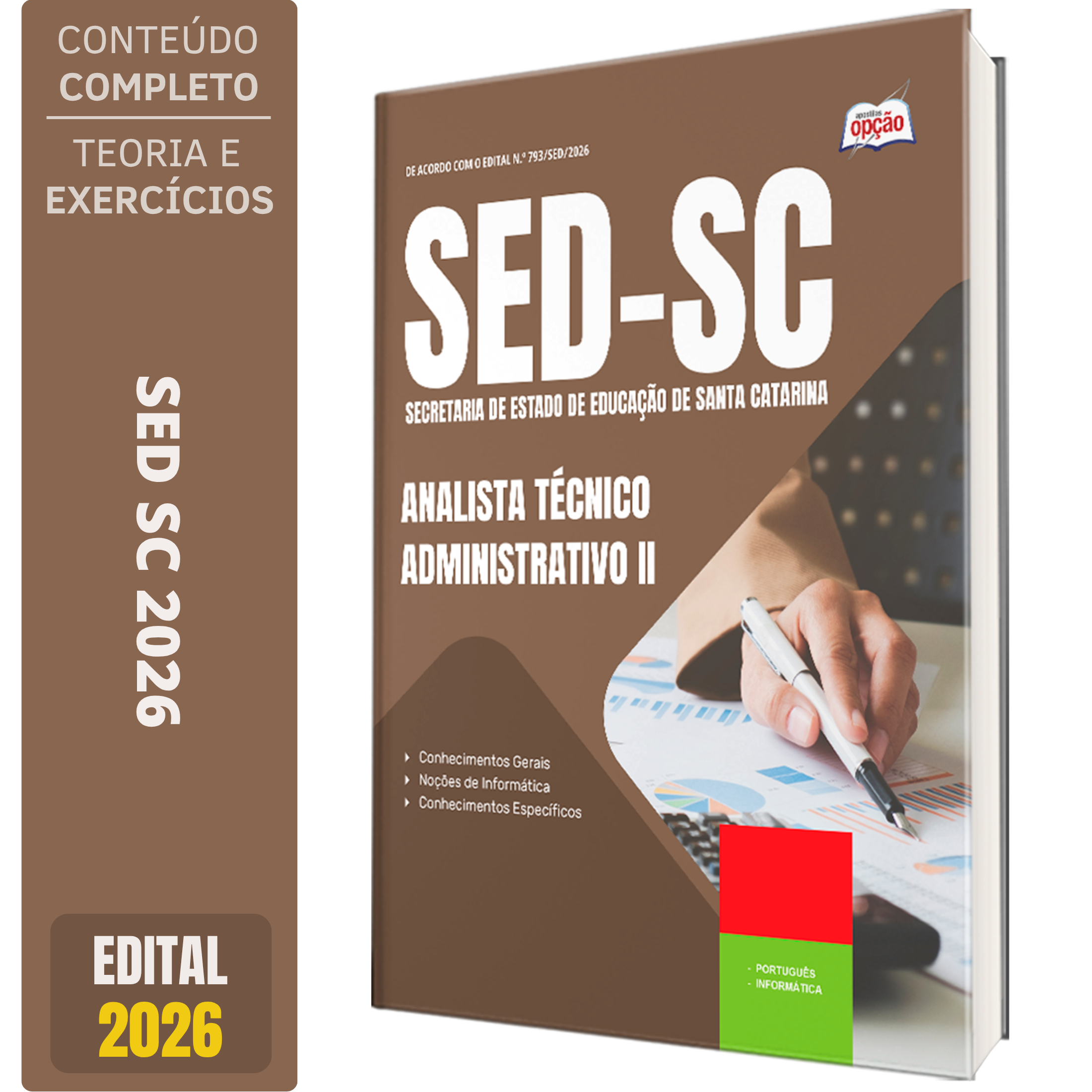 A Apostila para Analista Técnico Administrativo 2 do concurso SED SC 2026 foi rigorosamente elaborada conforme o edital, o que torna o seu conteúdo completo e atualizado.