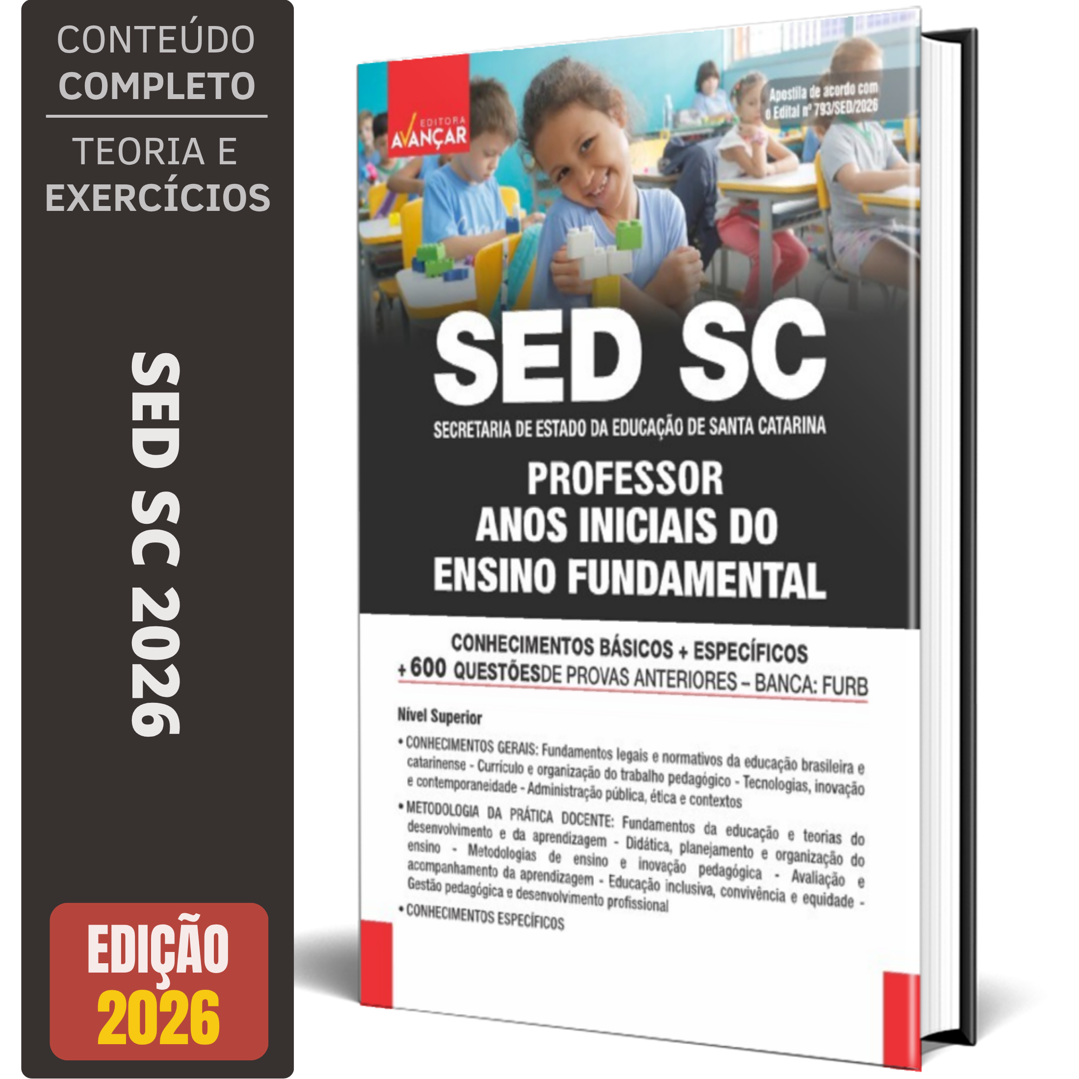 A Apostila para Professor – Anos Iniciais do Ensino Fundamental do concurso SED SC 2026 foi rigorosamente elaborada conforme o edital, o que torna o seu conteúdo completo e atualizado.