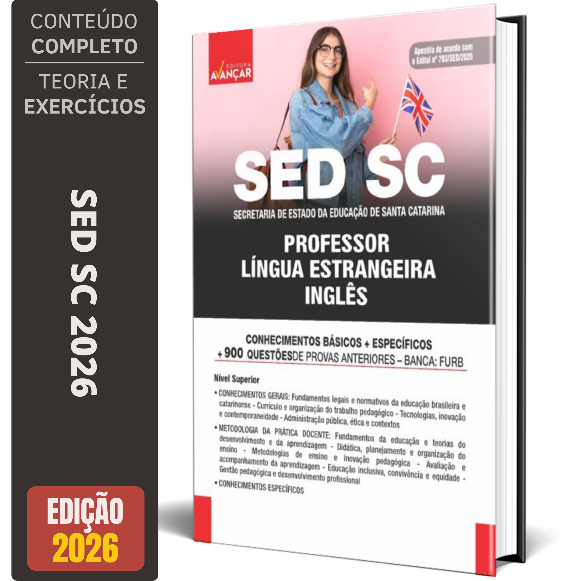 A Apostila para Professor – Inglês do concurso SED SC 2026 foi rigorosamente elaborada conforme o edital, o que torna o seu conteúdo completo e atualizado.