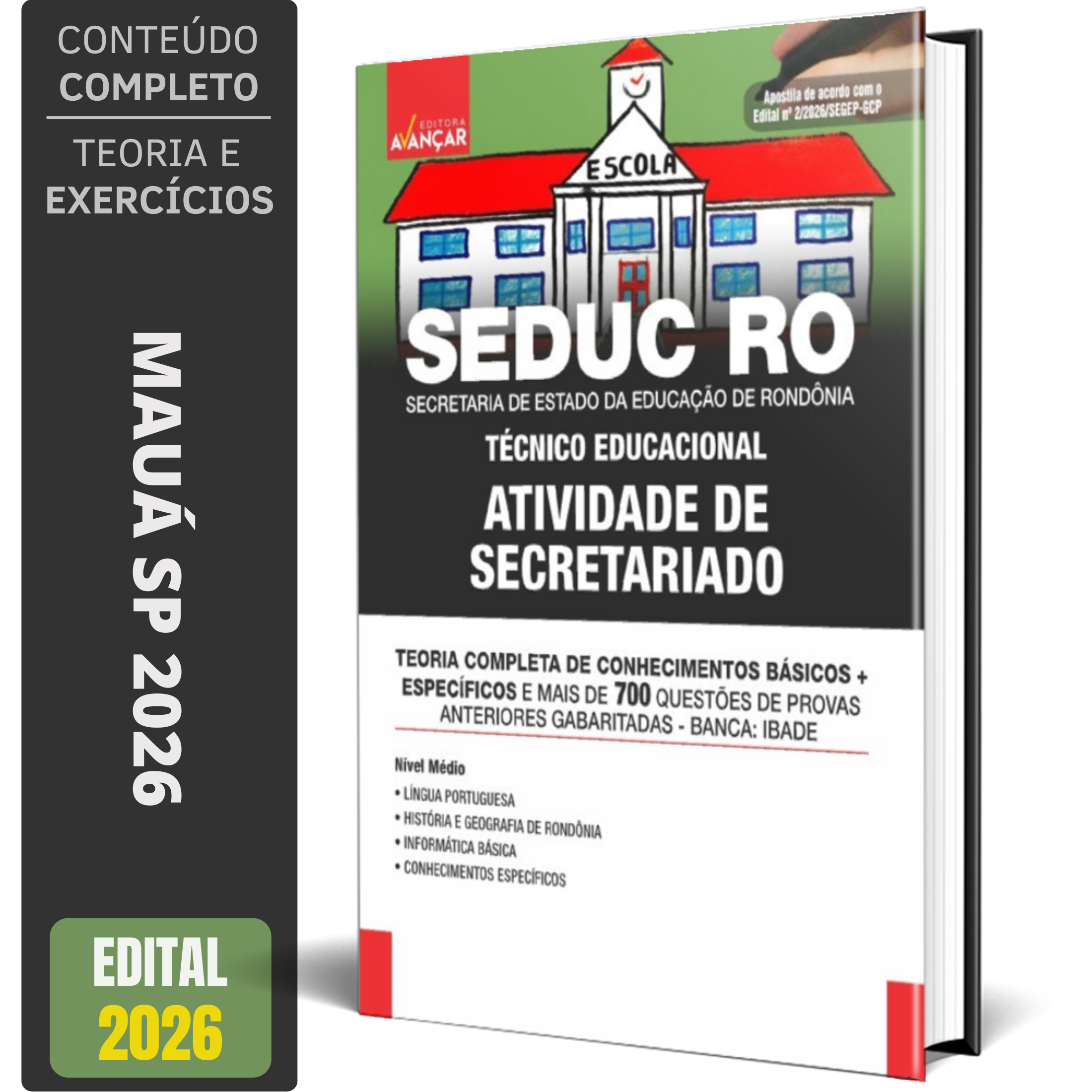 Apostila para SEDUC RO - SECRETARIA DE ESTADO DA EDUCAÇÃO DE RONDÔNIA 2026 para o cargo de TÉCNICO EDUCACIONAL: ATIVIDADE DE SECRETARIADO