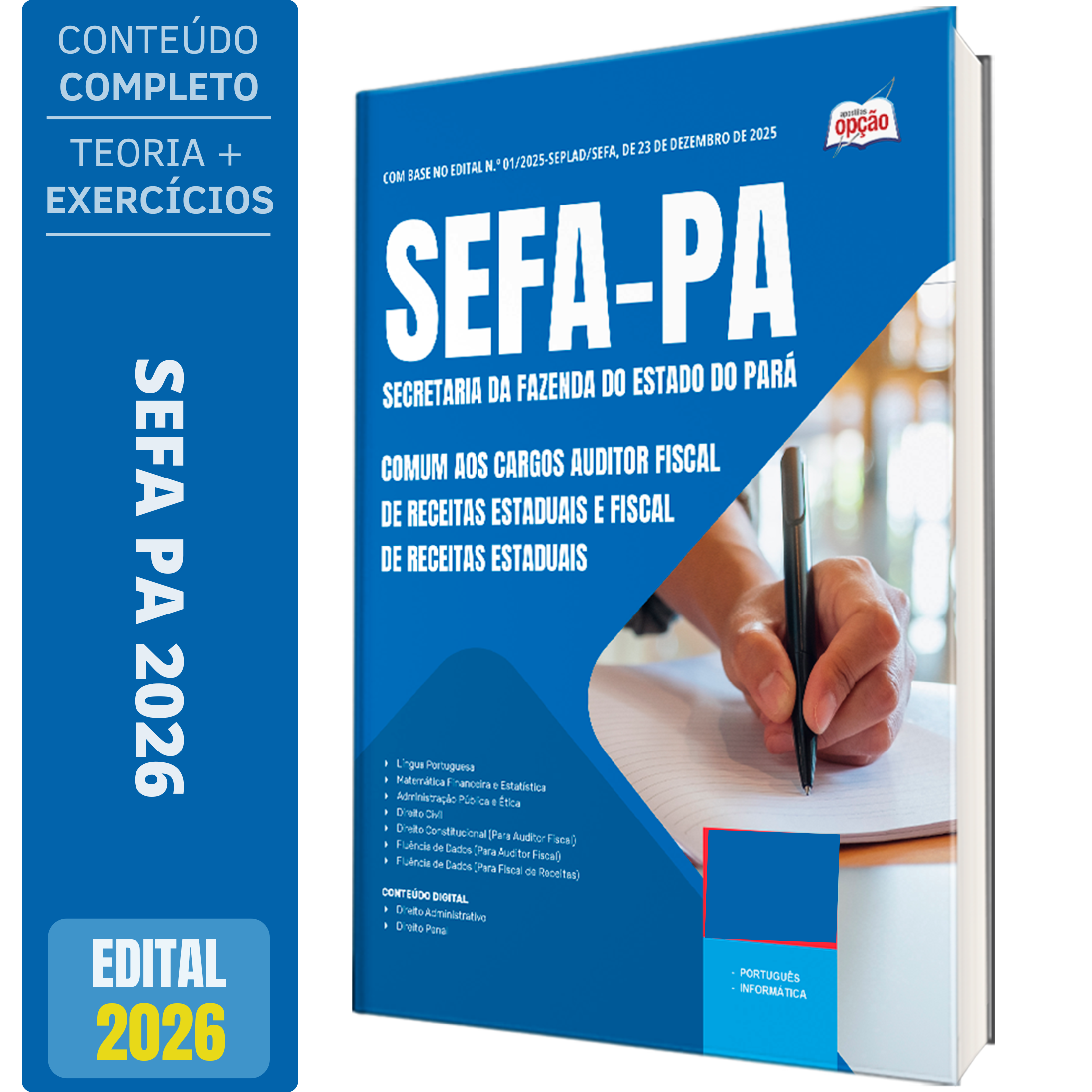 Apostila para SEFA-PA 2026 para o cargo de Comum aos Cargos Auditor Fiscal de Receitas Estaduais e Fiscal de Receitas Estaduais