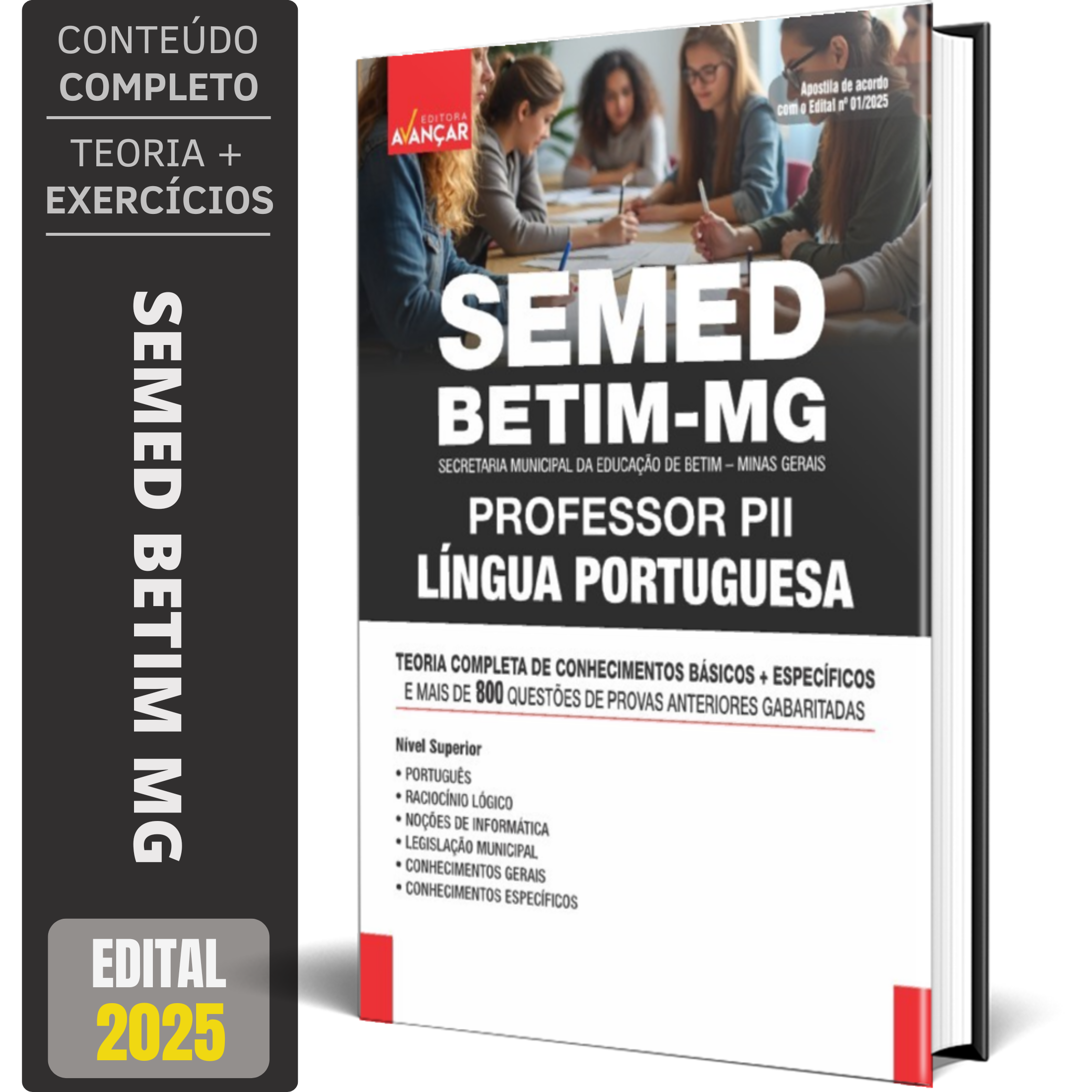 Apostila para SEMED BETIM MG - SECRETARIA MUNICIPAL DA EDUCAÇÃO DE BETIM MINAS GERAIS 2026 para o cargo de PROFESSOR PII - LÍNGUA PORTUGUESA