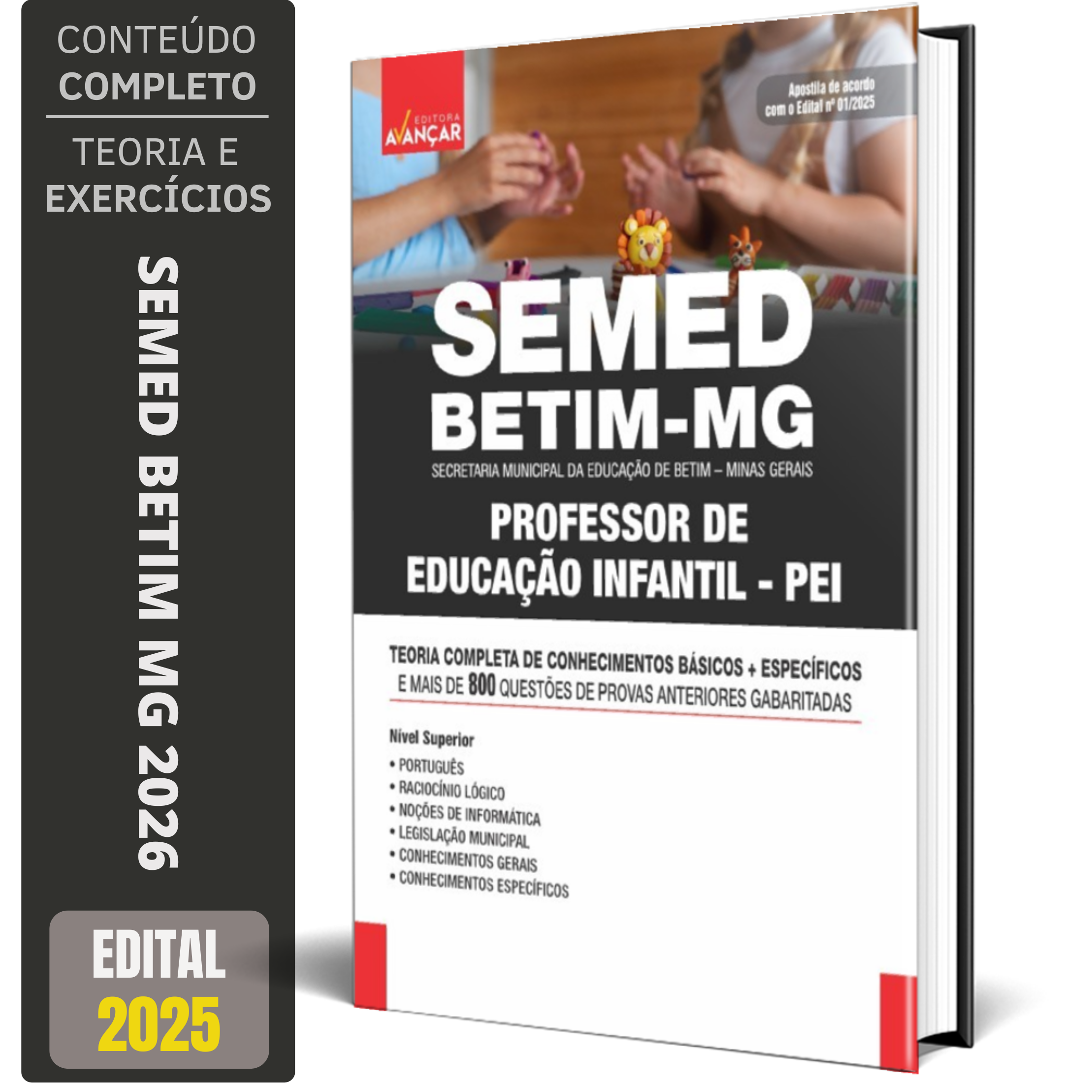 Apostila para SEMED BETIM MG - SECRETARIA MUNICIPAL DA EDUCAÇÃO DE BETIM MINAS GERAIS 2026 para o cargo de PROFESSOR DE EDUCAÇÃO INFANTIL - PEI