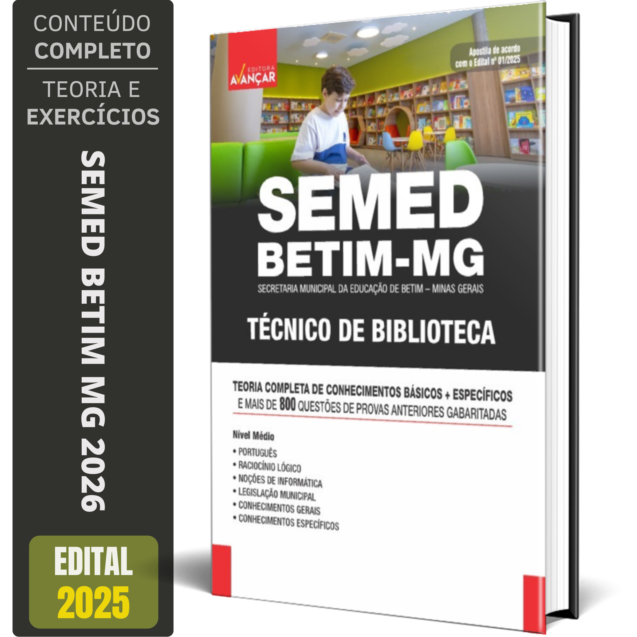 A Apostila Concurso SEMED BETIM MG - SECRETARIA MUNICIPAL DA EDUCAÇÃO DE BETIM MINAS GERAIS 2026 - TÉCNICO DE BIBLIOTECA contempla as seguintes matérias:
