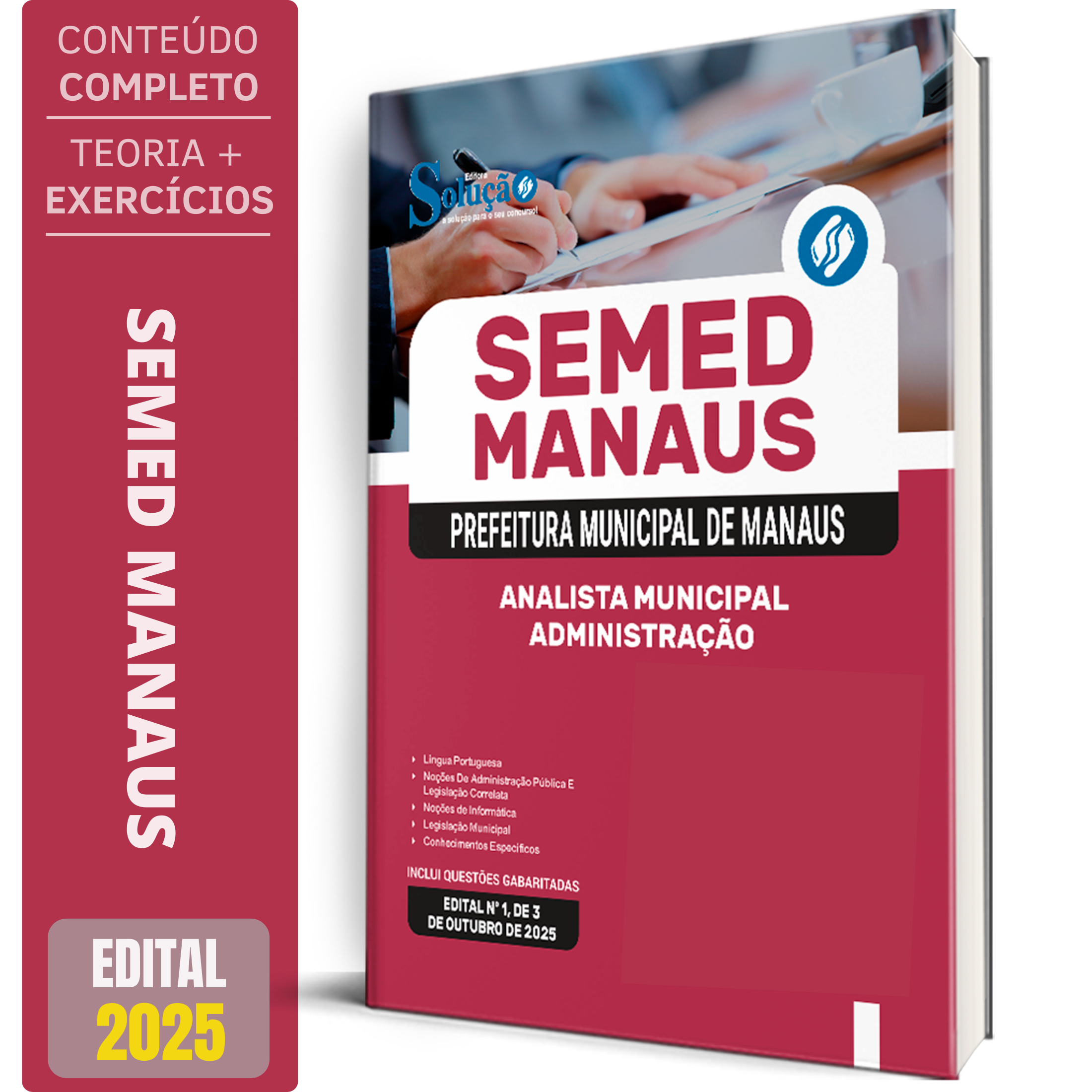 A Apostila Concurso SEMED MANAUS 2025 - Analista Municipal - Administração contempla as seguintes matérias:
