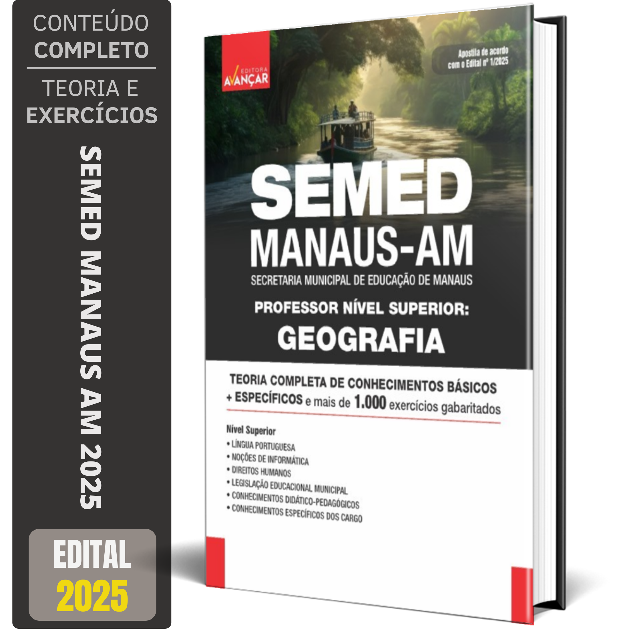 Apostila para SEMED MANAUS AM - SECRETARIA MUNICIPAL DE EDUCAÇÃO DE MANAUS 2025 para o cargo de PROFESSOR DE GEOGRAFIA